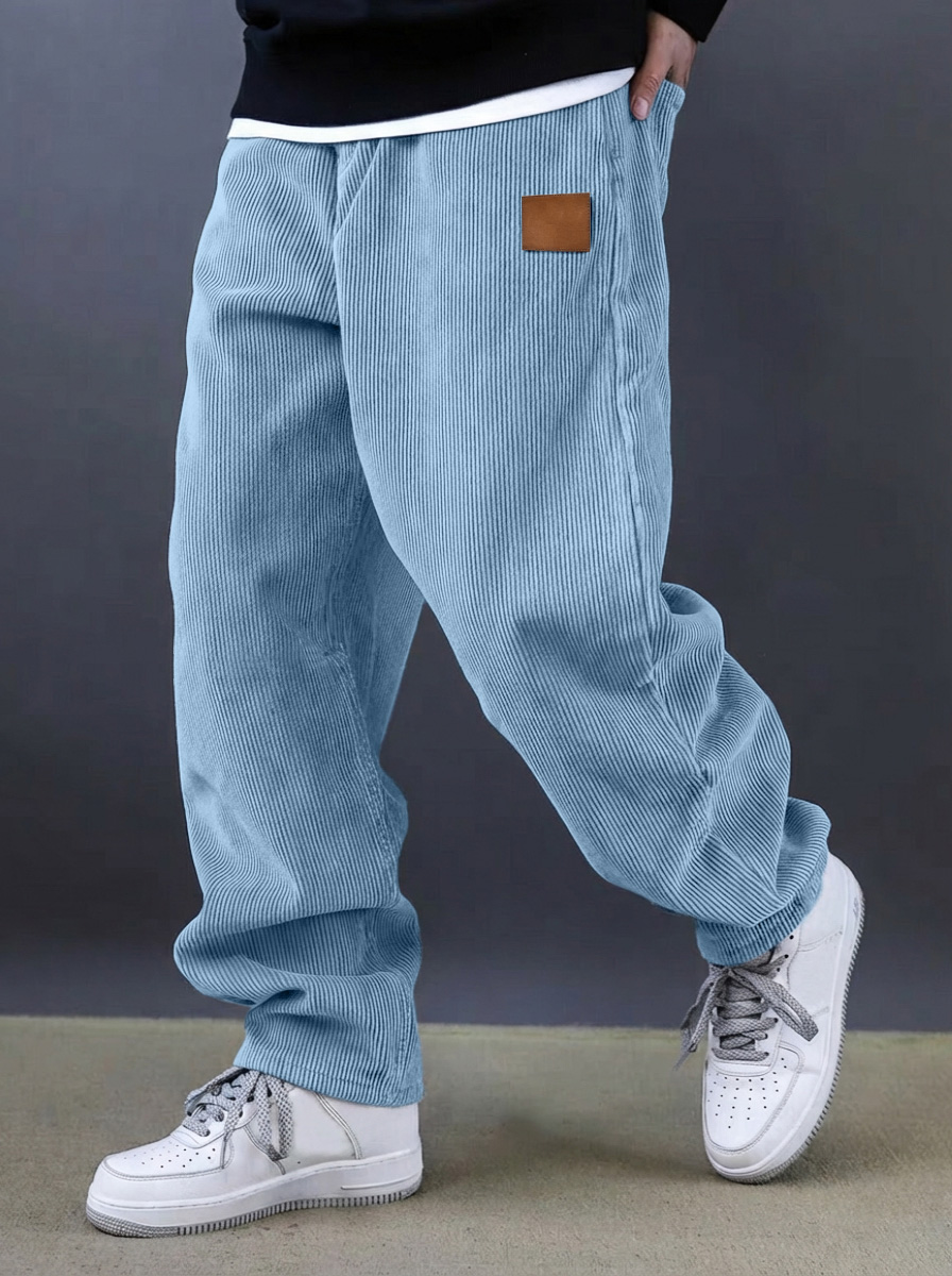 Herren Vintage Corduroy Waffelgewebe Besticktes Lederlabel Freizeit-Hosen