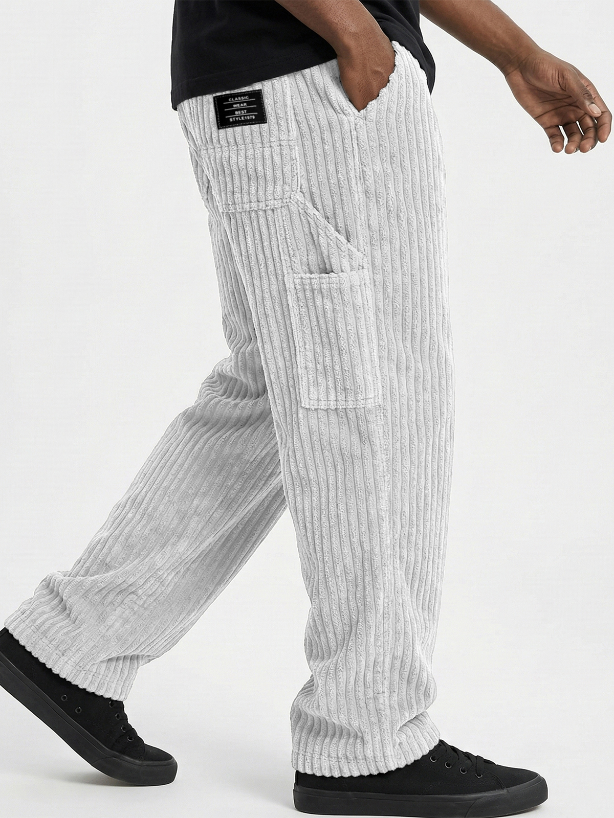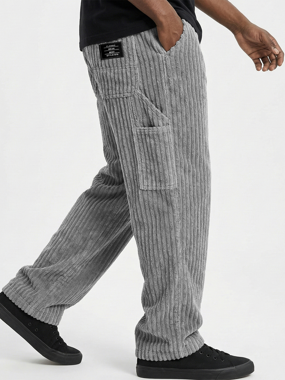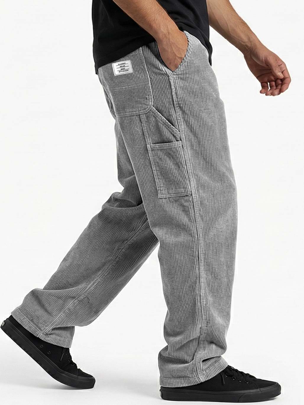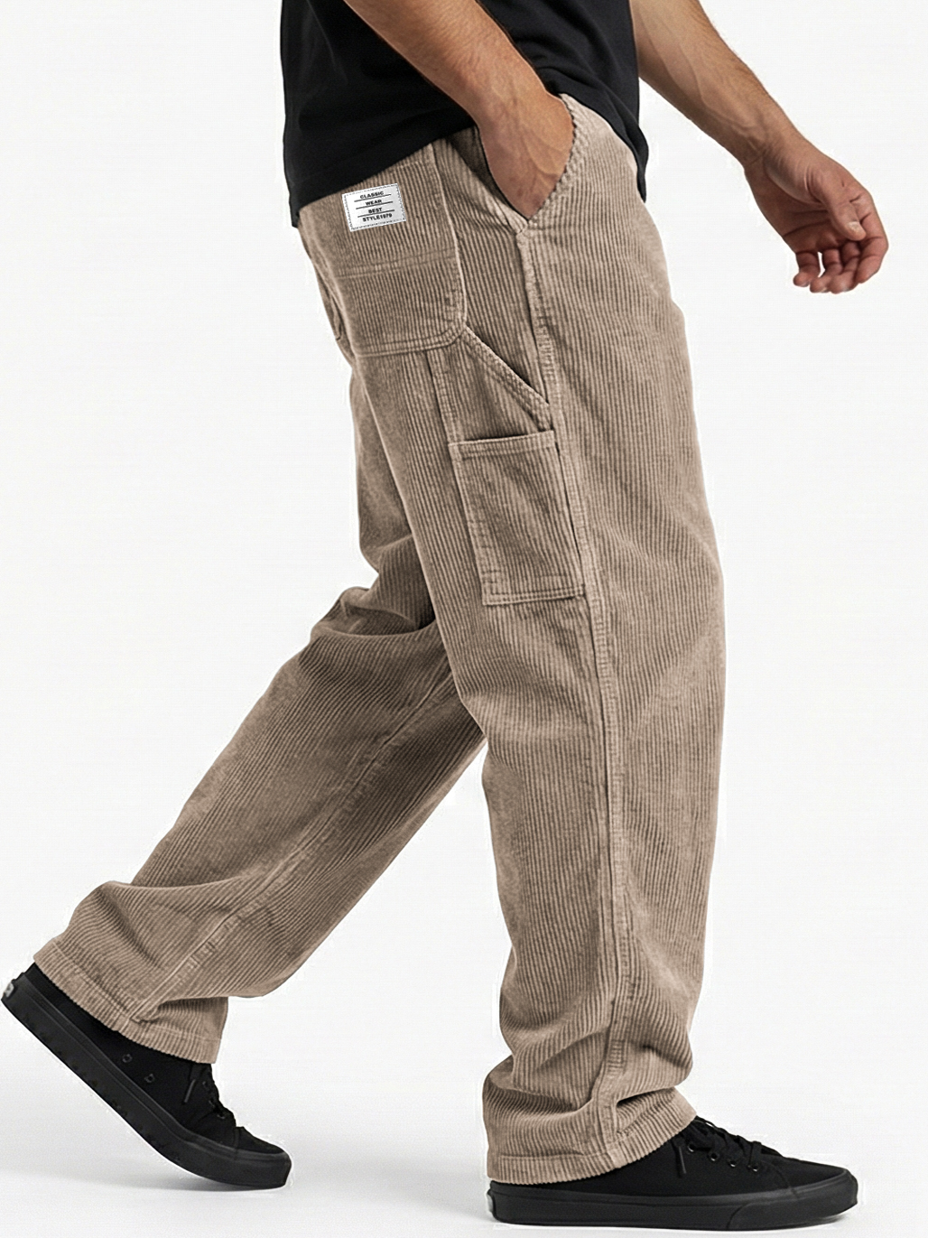 Herren Retro Corduroy Patch Pocket Besticktes Logo Freizeit Cargo-Hosen