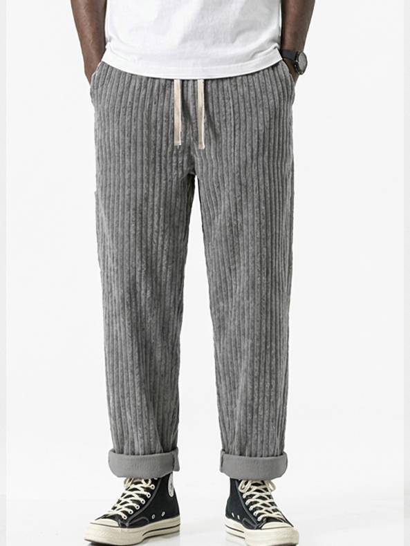 Corduroy Waffle-Hosen mit mehreren Taschen und gestickten Etiketten