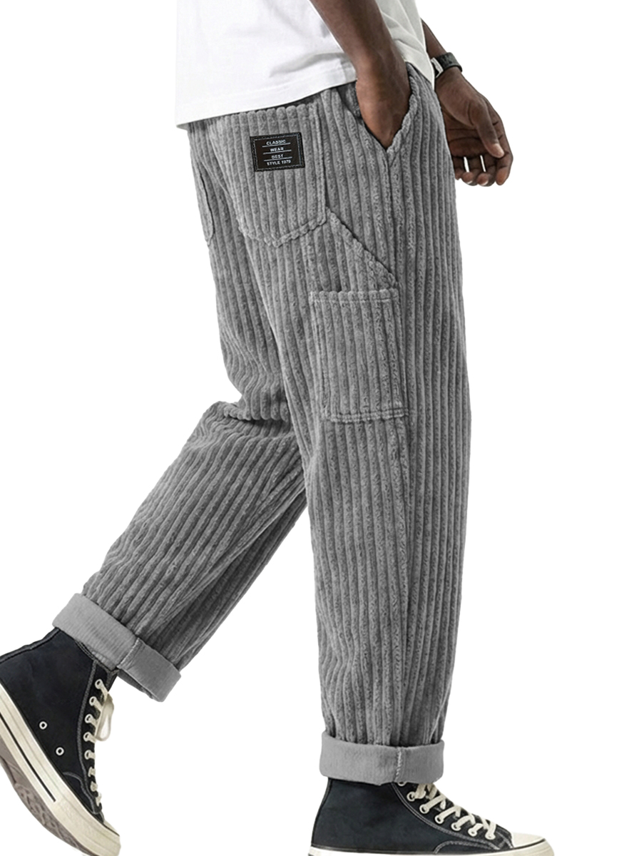Herren Vintage Praktische Arbeitskleidung Corduroy-Hosen mit mehreren Taschen und gesticktem Etikett