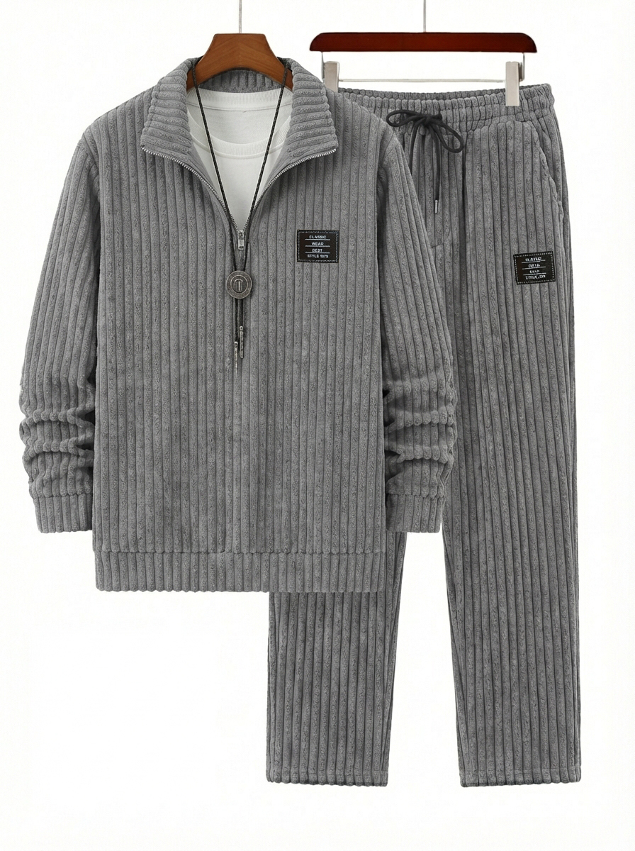 Herren Vintage Corduroy Viertel-Reißverschluss Sweatshirt und Hose Set OOTD