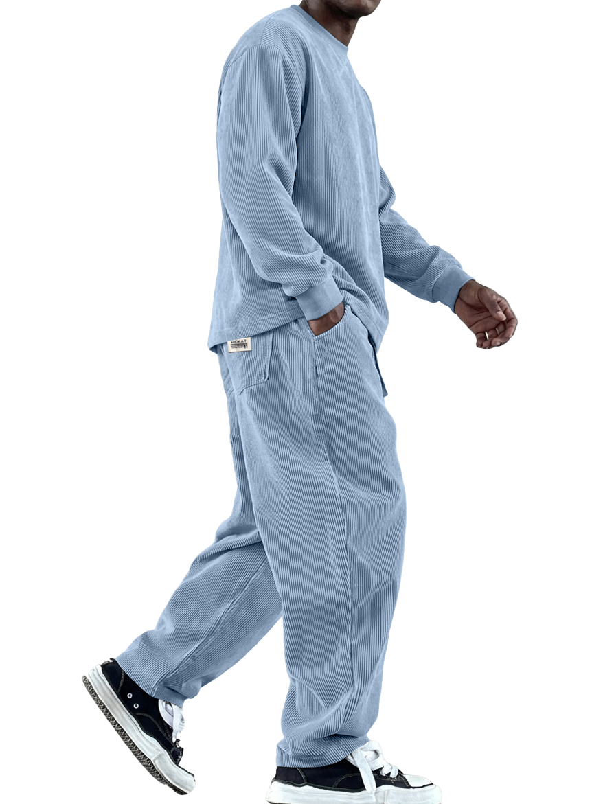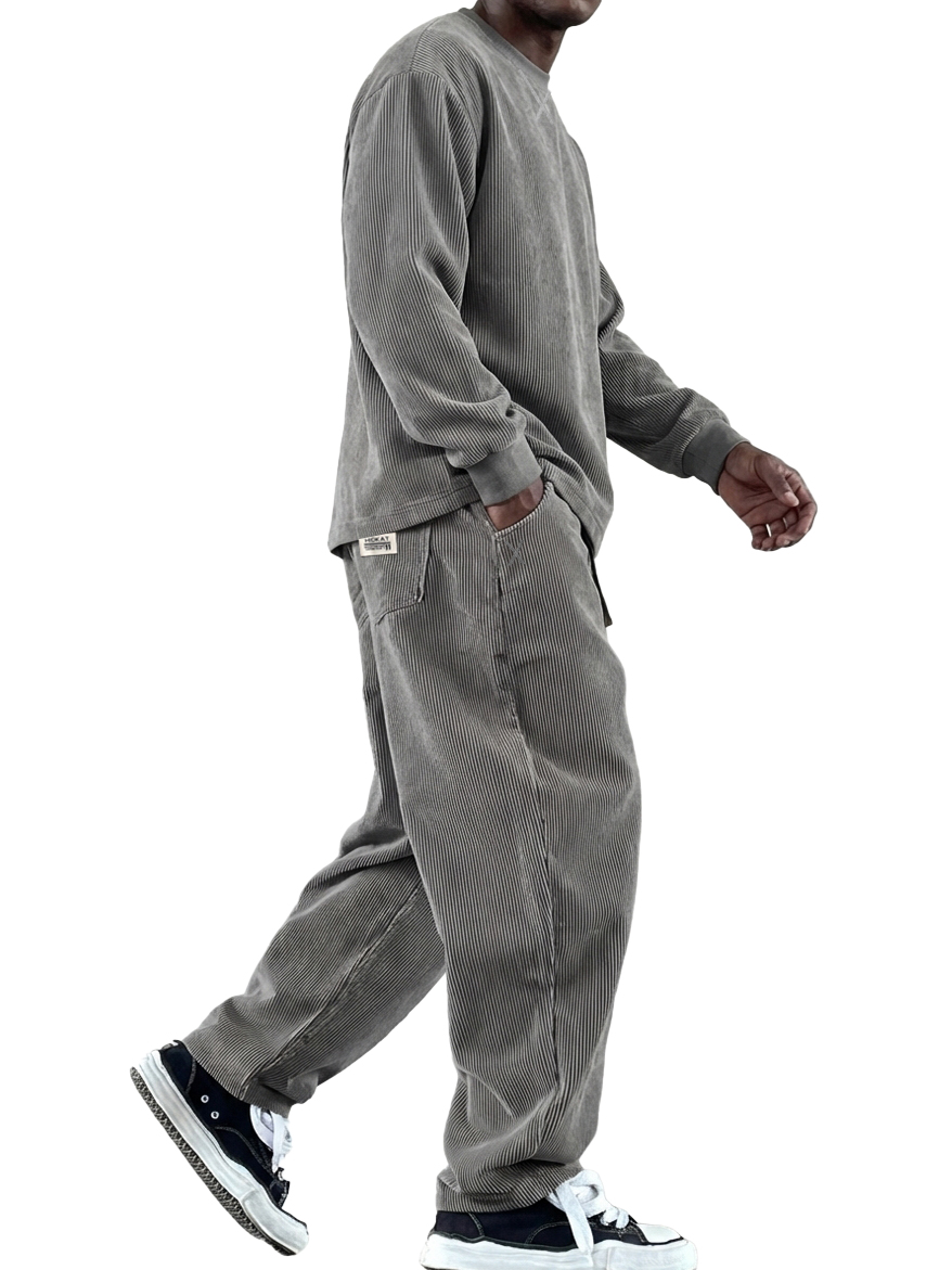 Herren Vintage Corduroy Langarm-T-Shirt und lockere gerade Hosen Set