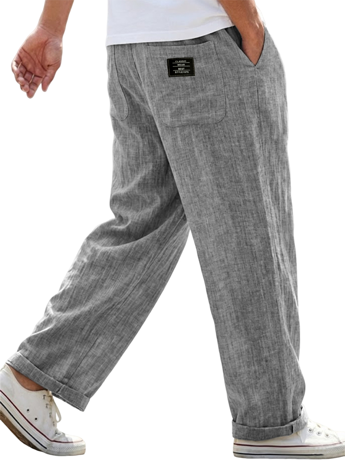 Herren Atmungsaktive Leinen Vintage Mehrfachtaschen Freizeit Bestickte Patchwork-Hosen