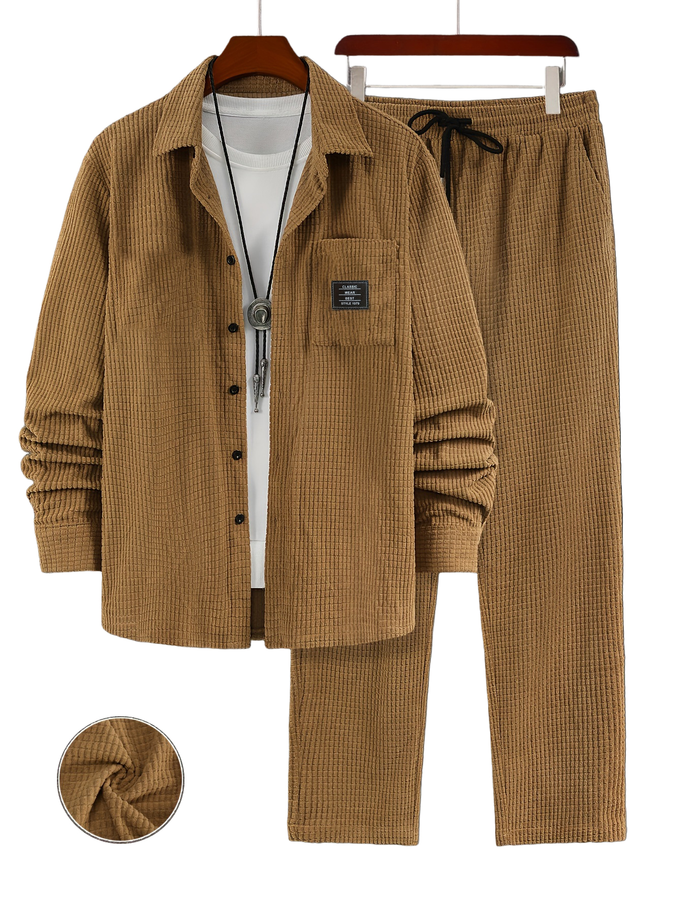 Herren Retro Corduroy Langarmhemd und Hose Set OOTD