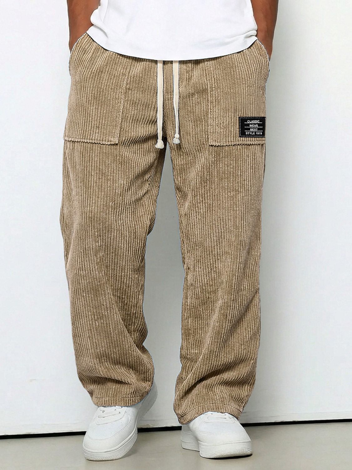 Herren Stylische Cordhosen mit bestickten Etiketten und aufgesetzten Taschen