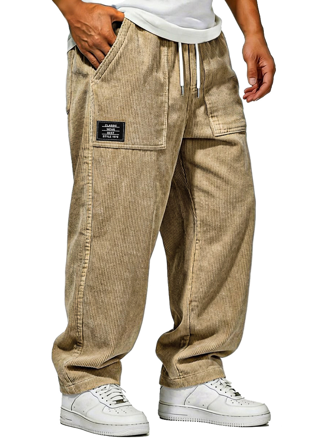 Herren Vintage Cordhosen mit aufgesetzten Taschen und gesticktem Logo