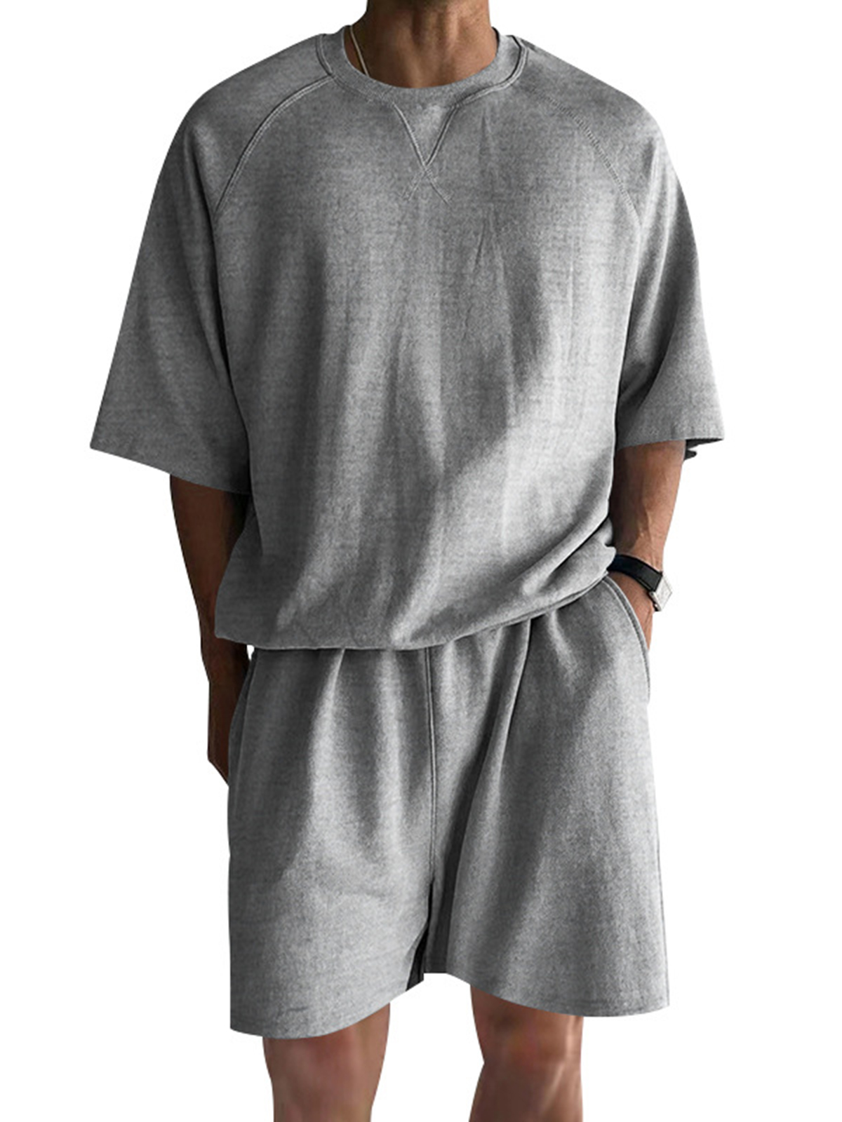 Herren Stilvolles Baumwollanzug Rundhals Raglanärmel Kurzarm T-Shirt und Shorts Alltag Lässiges Zweiteiliges Set