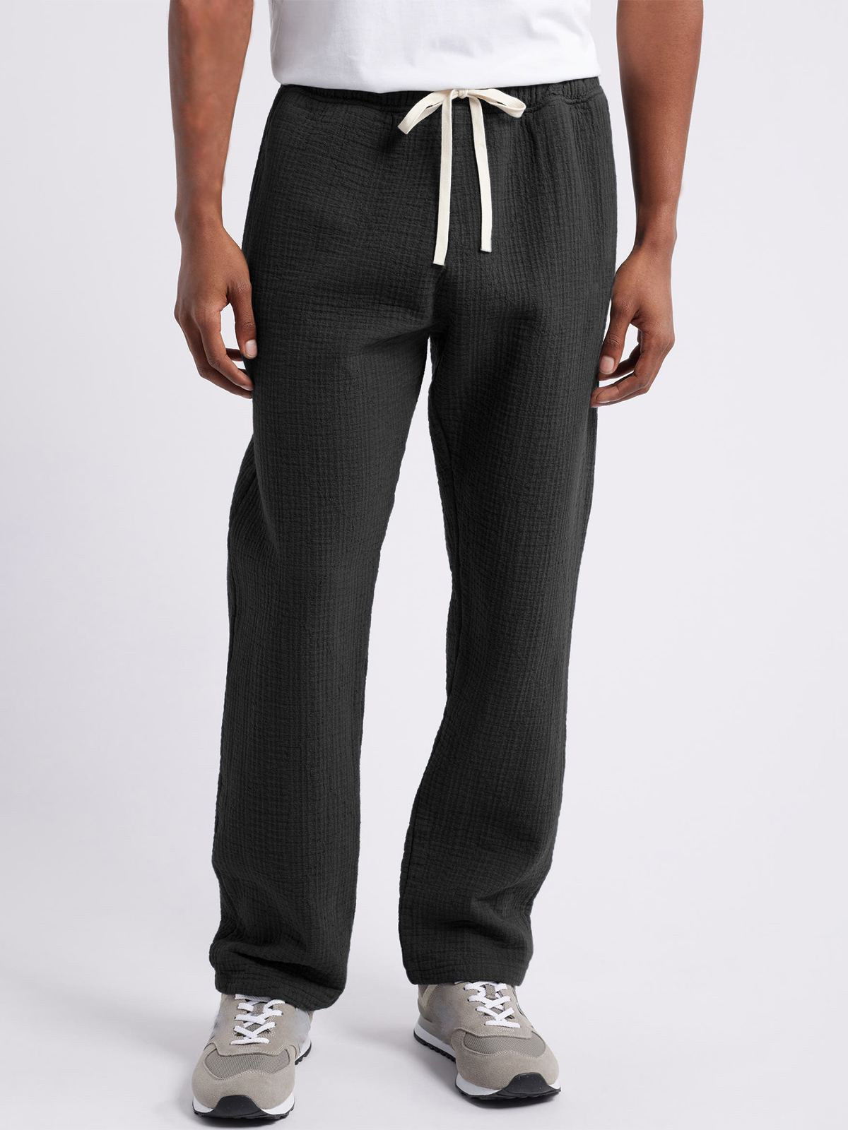Herren Atmungsaktive Seersucker-Hosen Lässige Urlaub Grundlegende Jogginghosen mit Seitentaschen