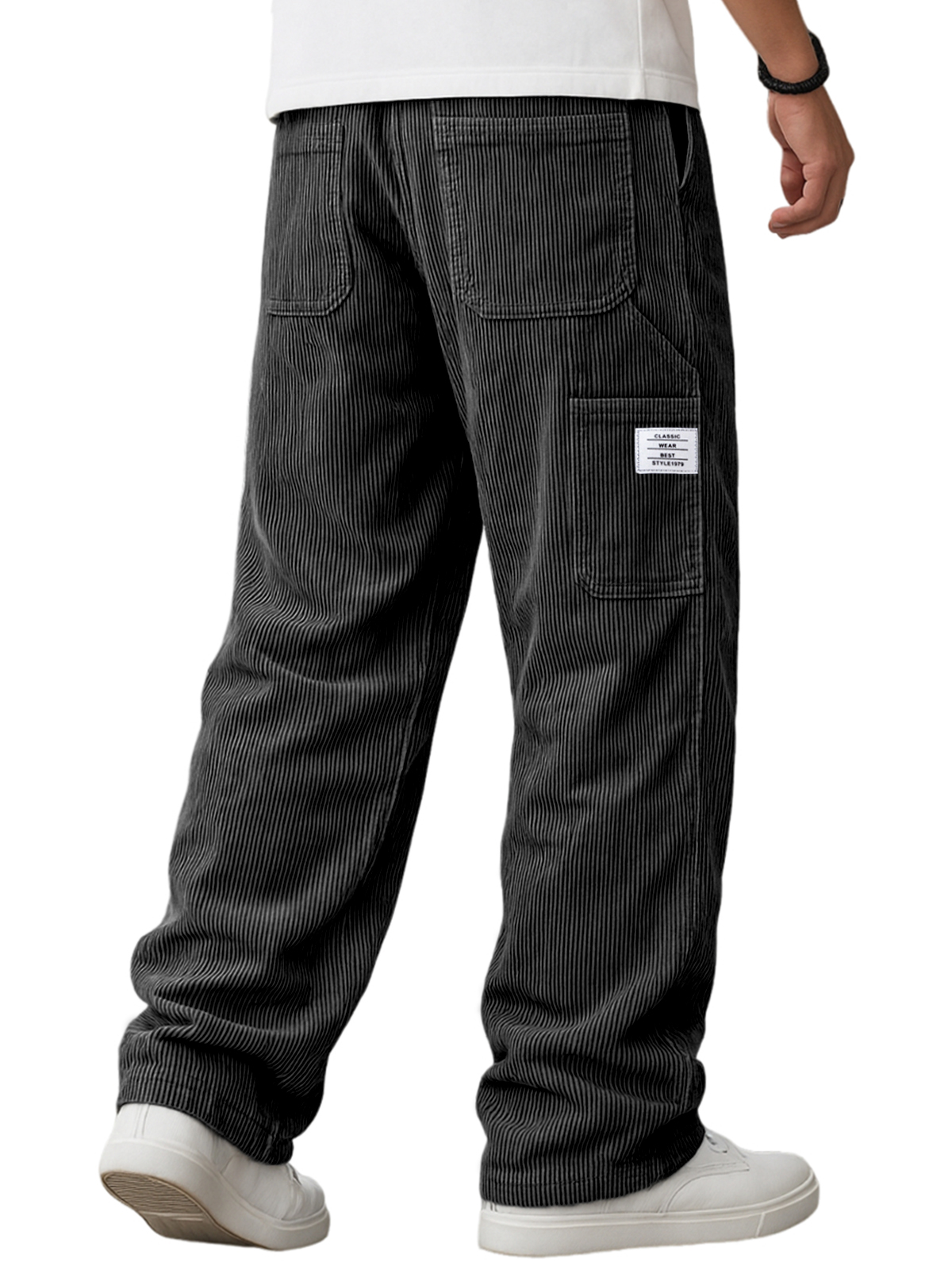 Herren Vintage Corduroy Texturierte Komfort Weit Gestreifte Hose mit Bestickten Minimalistischen Etiketten
