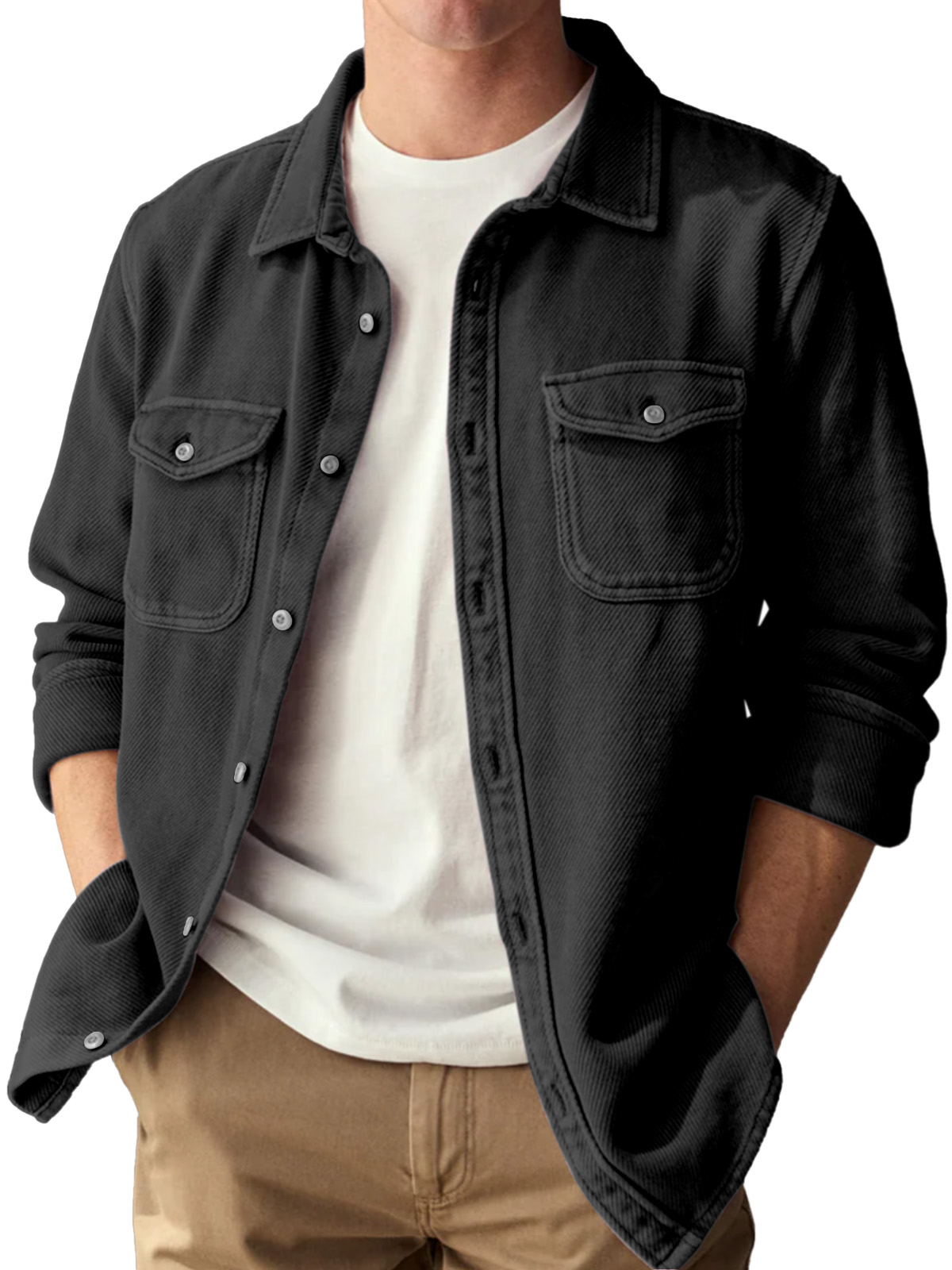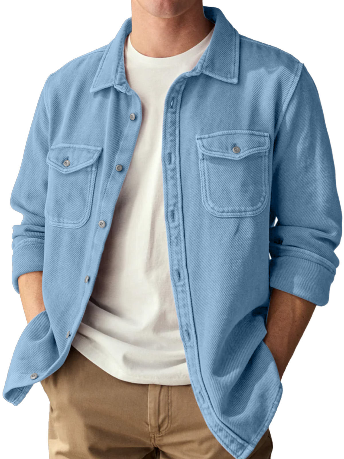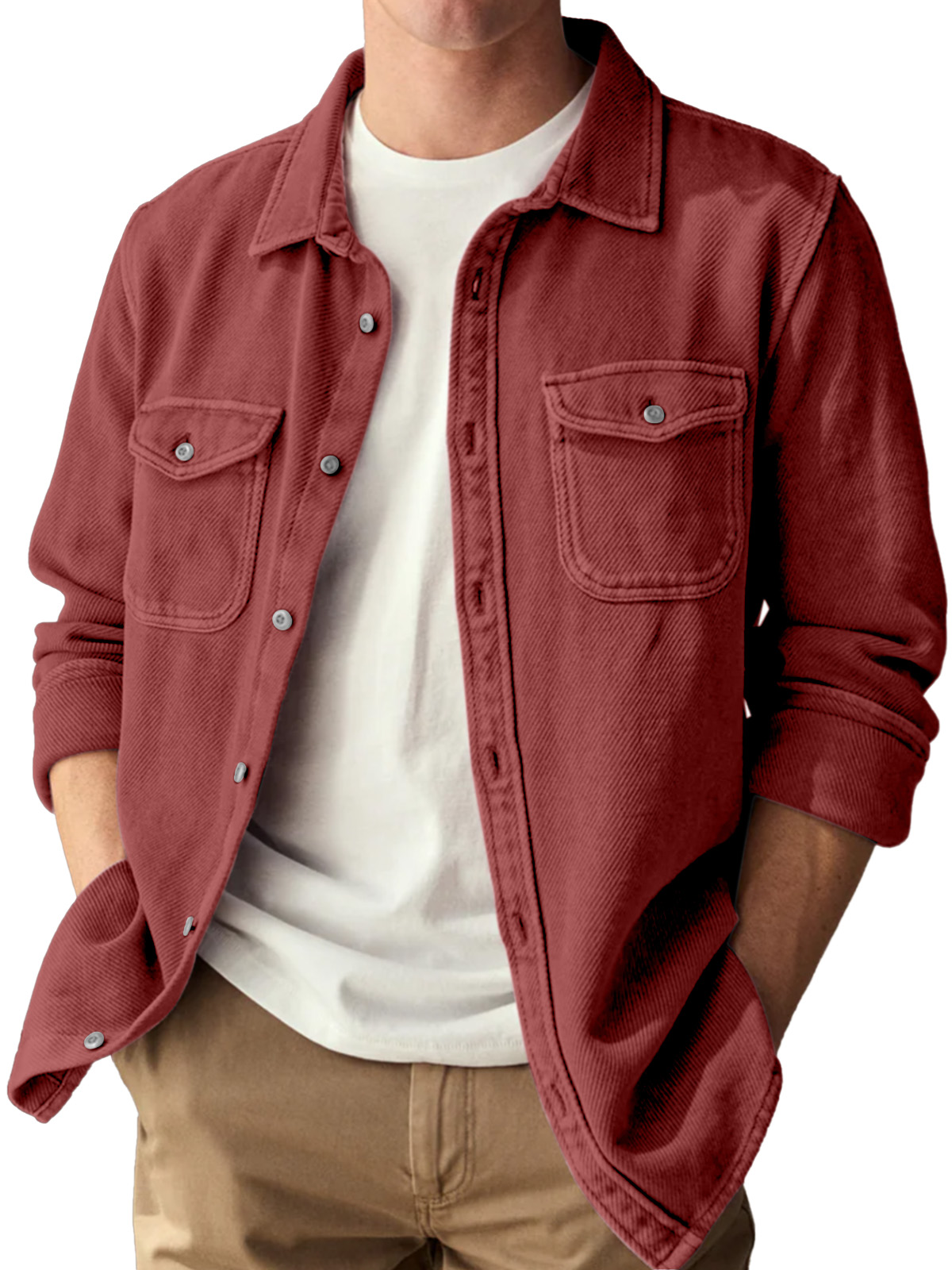 Basic Vintage Doppelter Taschen Revers Knopf-Down Langarmhemd