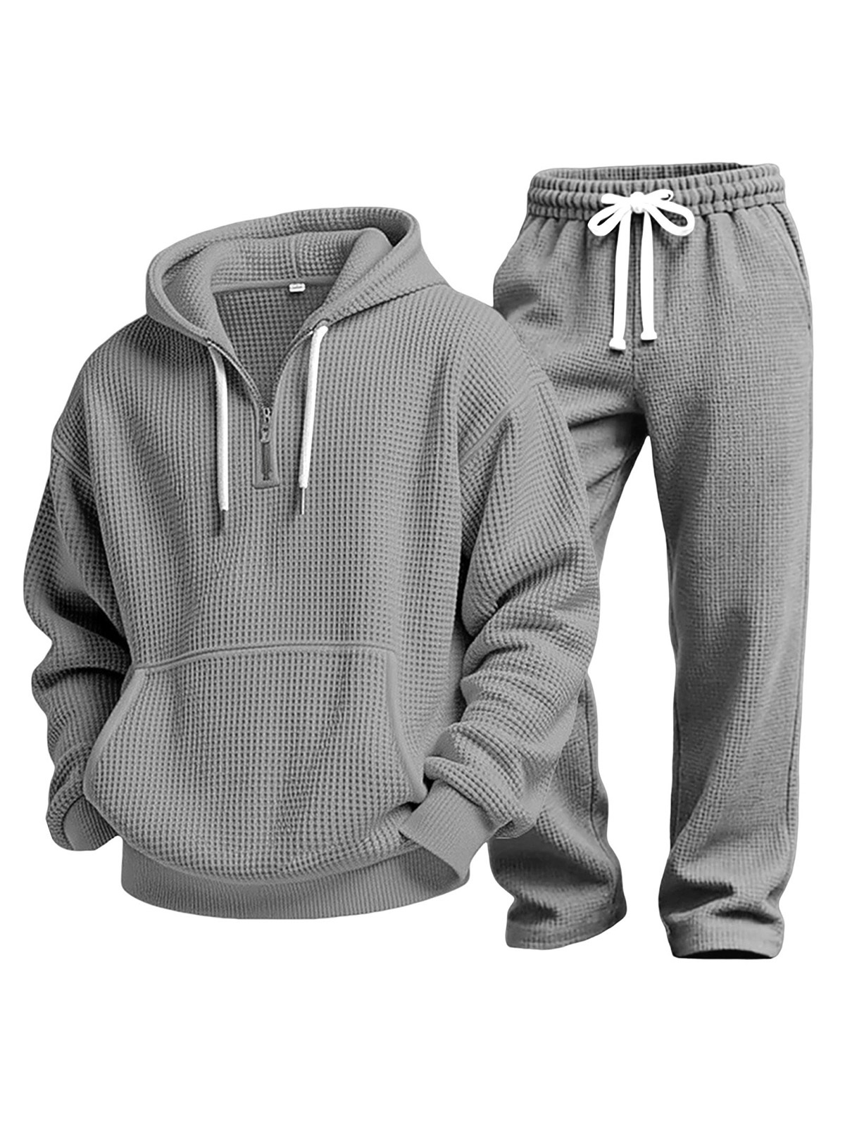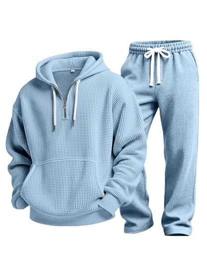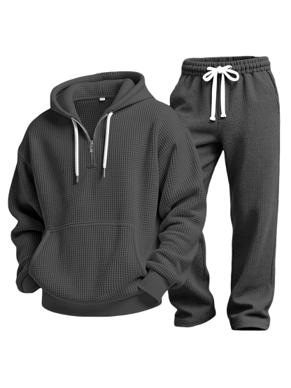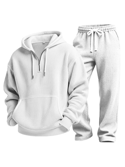 Lässiges einfarbiges vielseitiges Waffelstrick-Sweatshirt und Hose Zweiteiliges Set