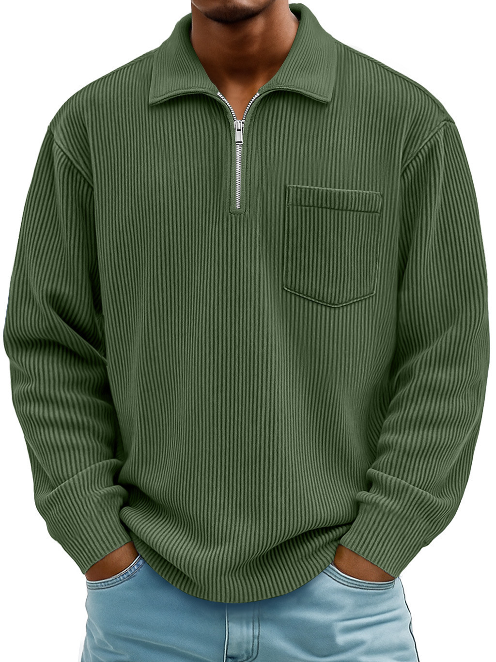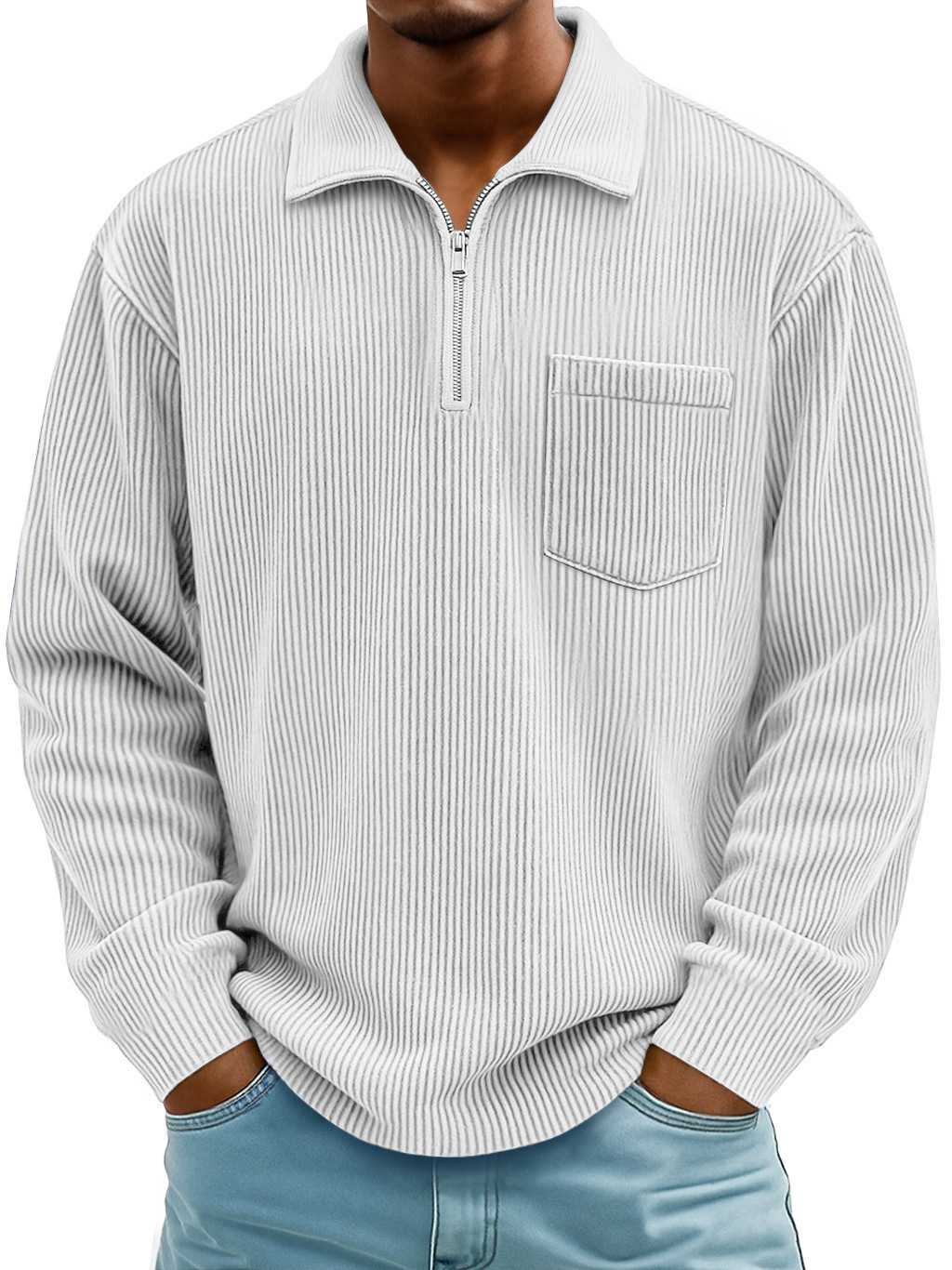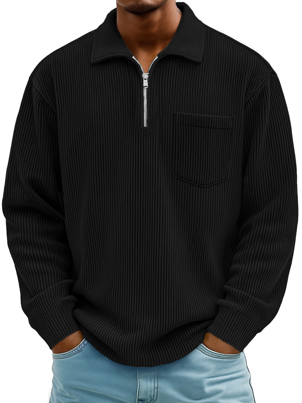 Herren-Rippstrickoberteil mit halbem Reißverschluss und Revers