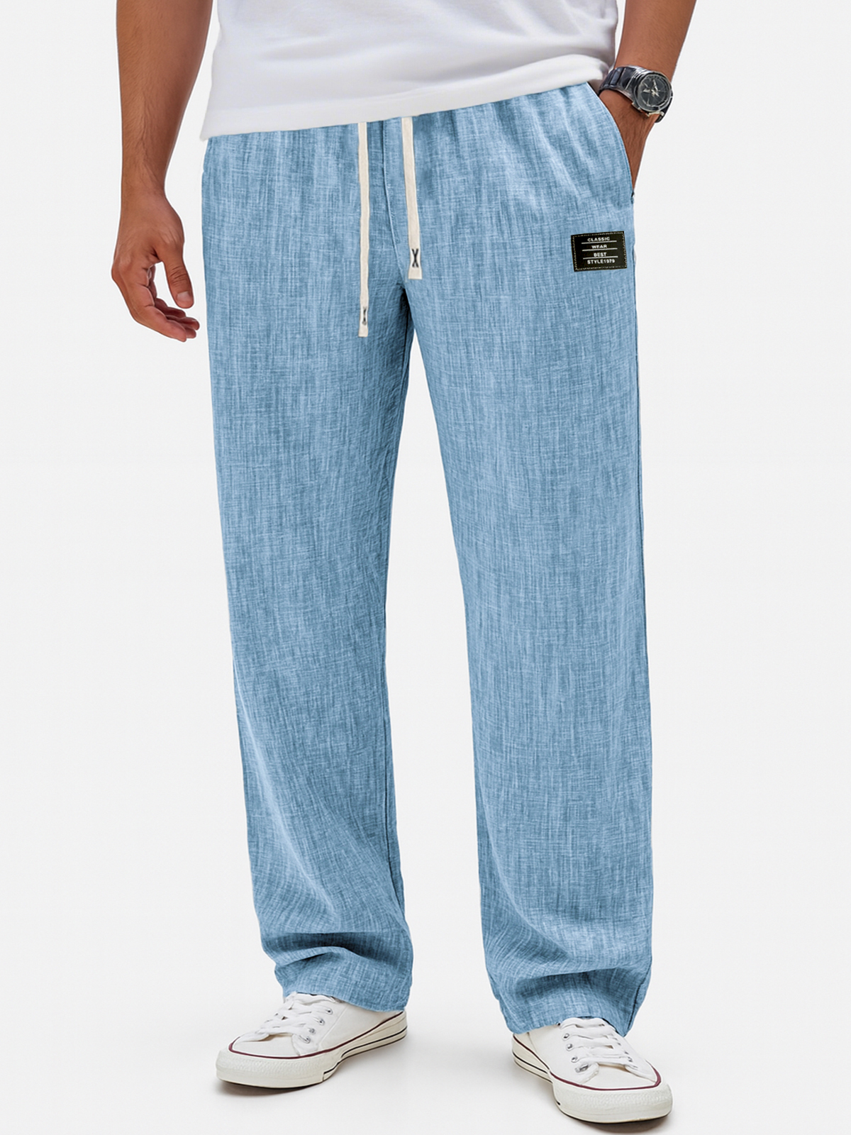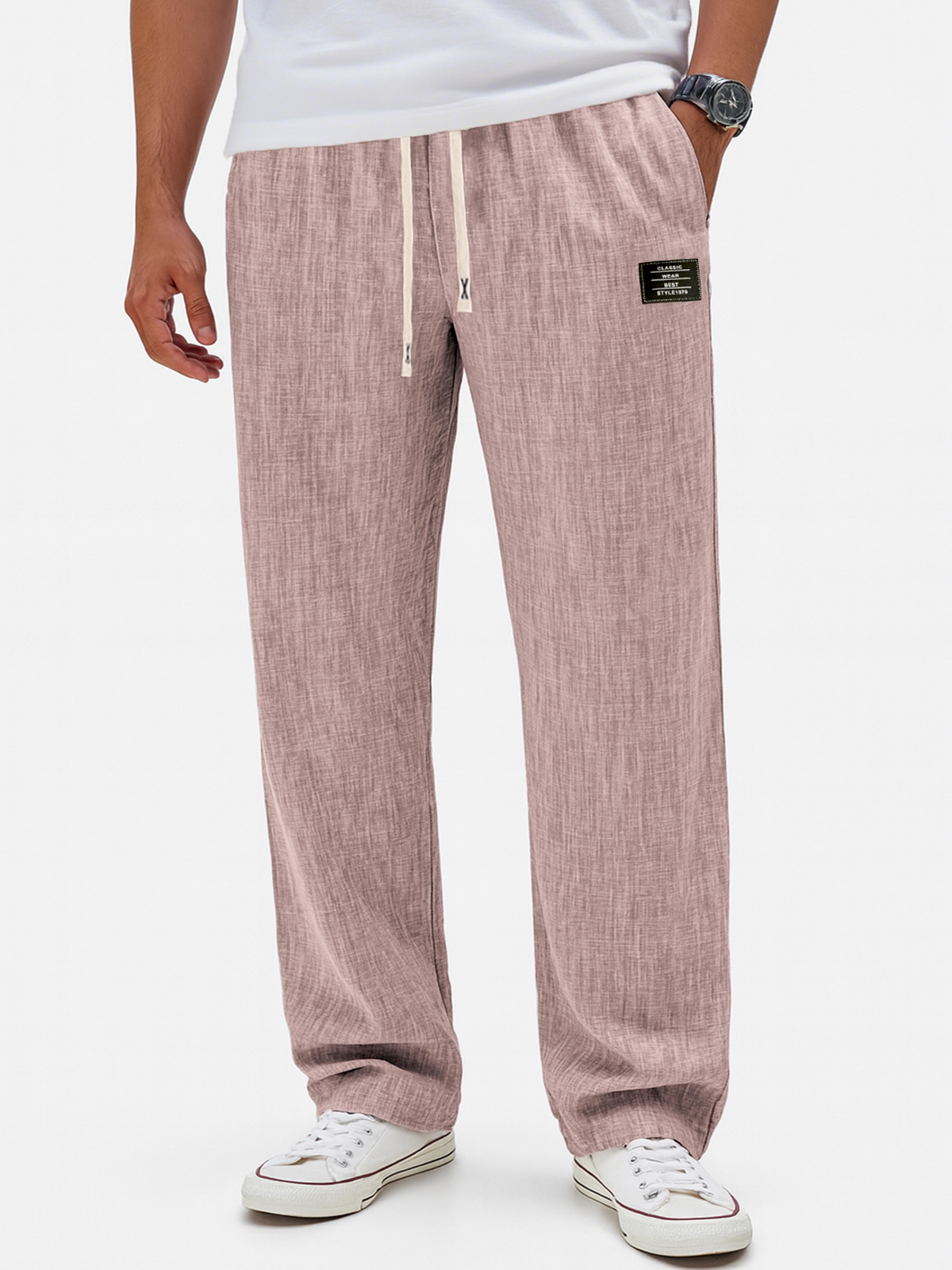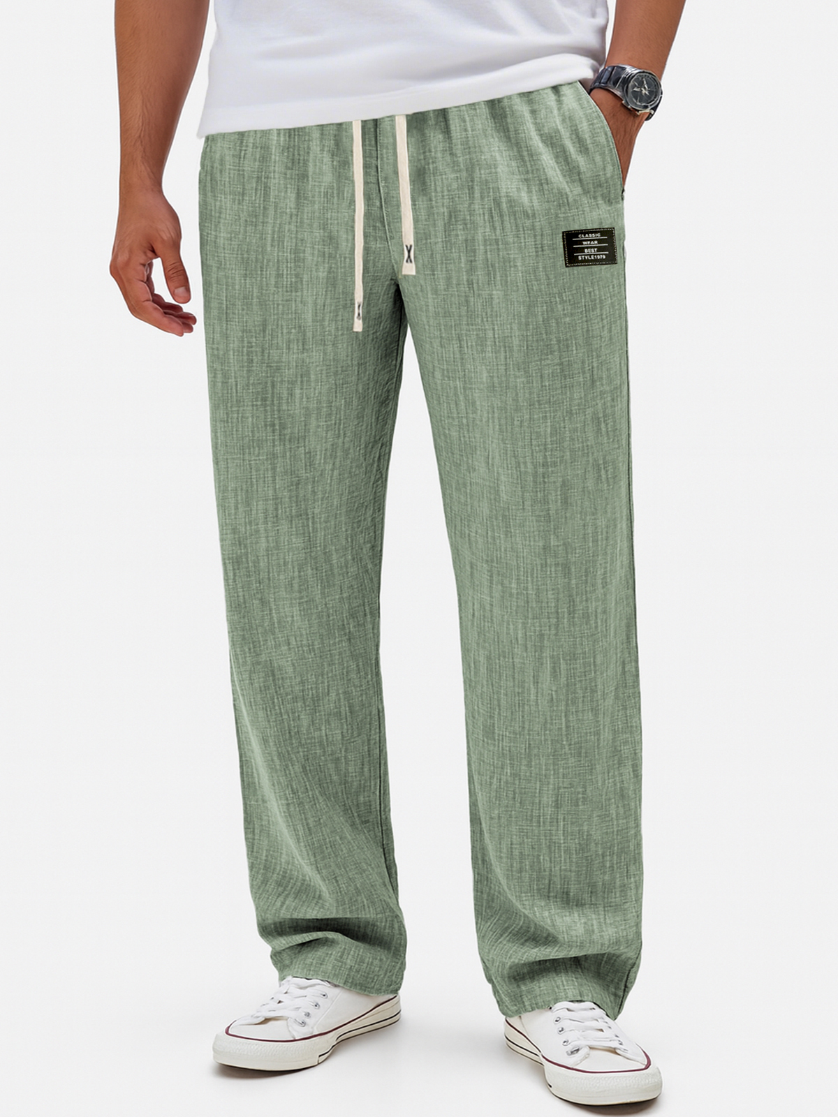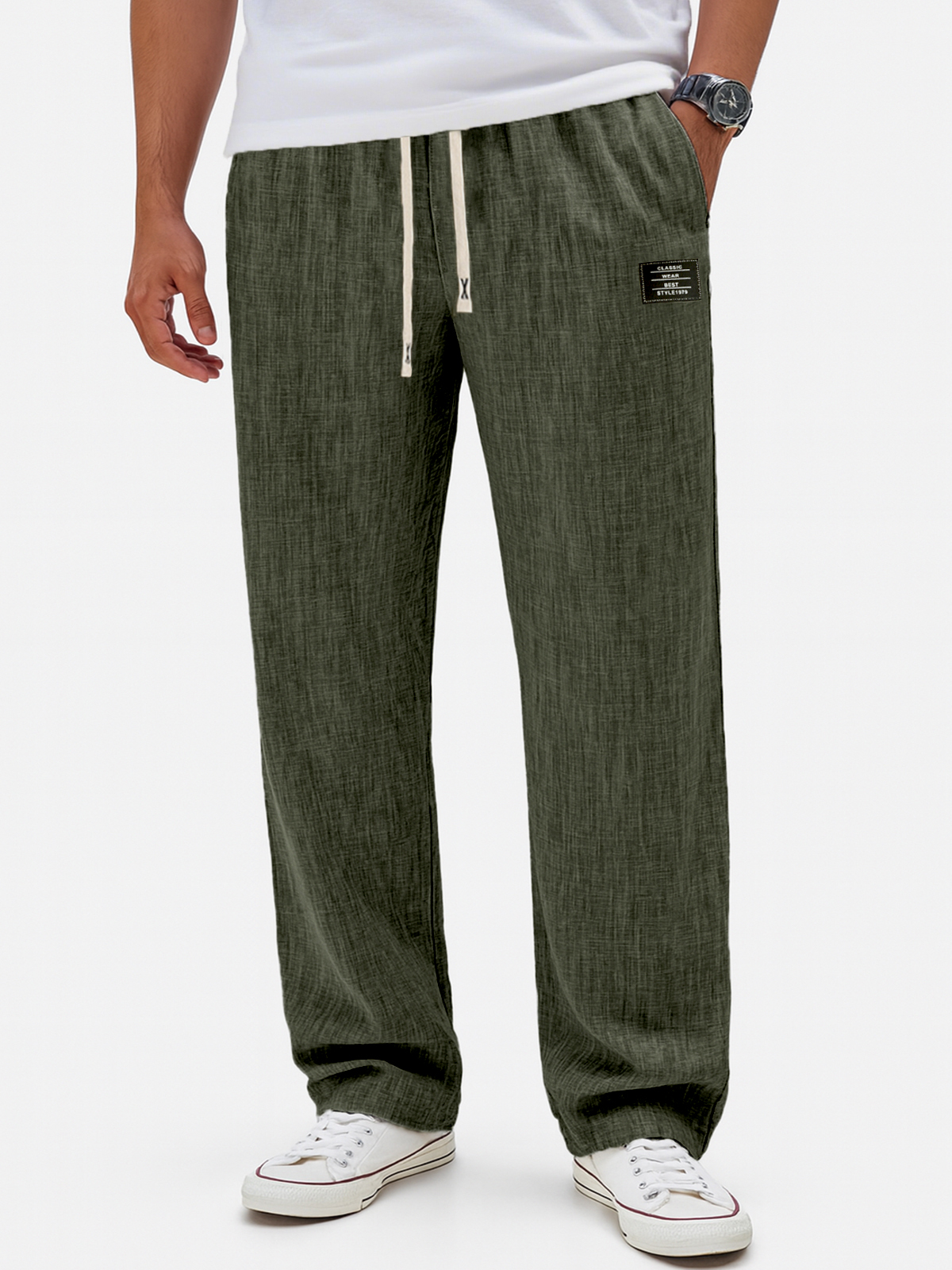 Herren Atmungsaktive Leinen Crinkle Freizeit Jogginghose mit Bestickten Etiketten