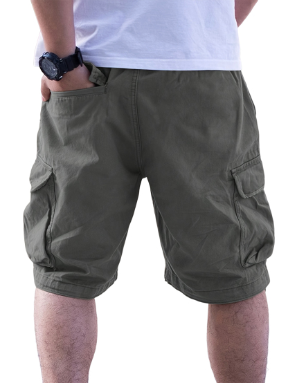 Herren Freizeit Cargo Shorts mit lockerer Passform und mehreren Taschen, einfarbig, mittlere Leibhöhe, elastischer Bund mit Kordelzug