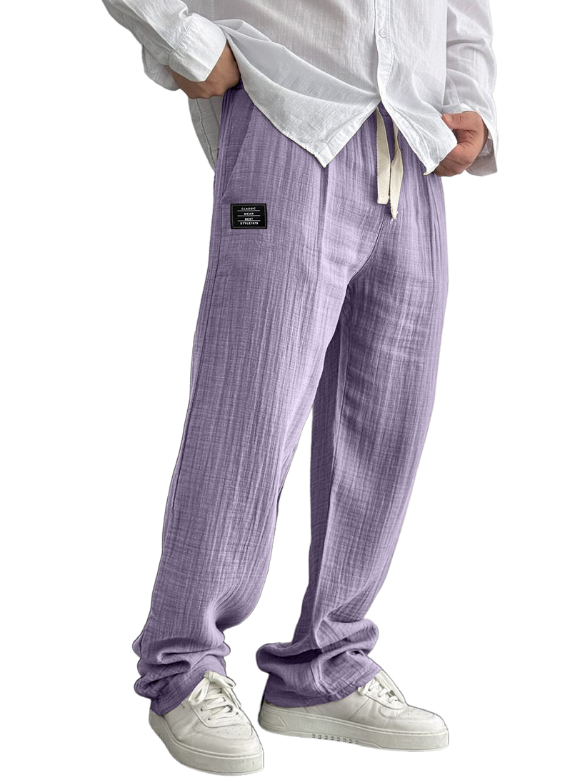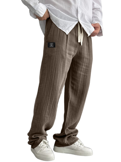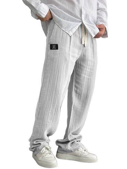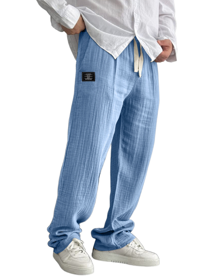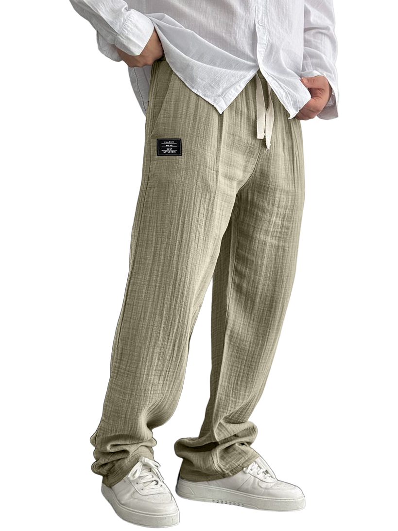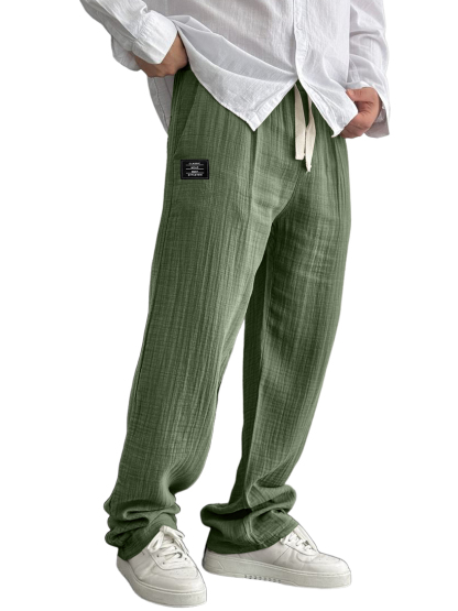 Herren Baumwolle und Leinen lässige bestickte Logo Kordelzug lockere elastische Taille Taschenhose