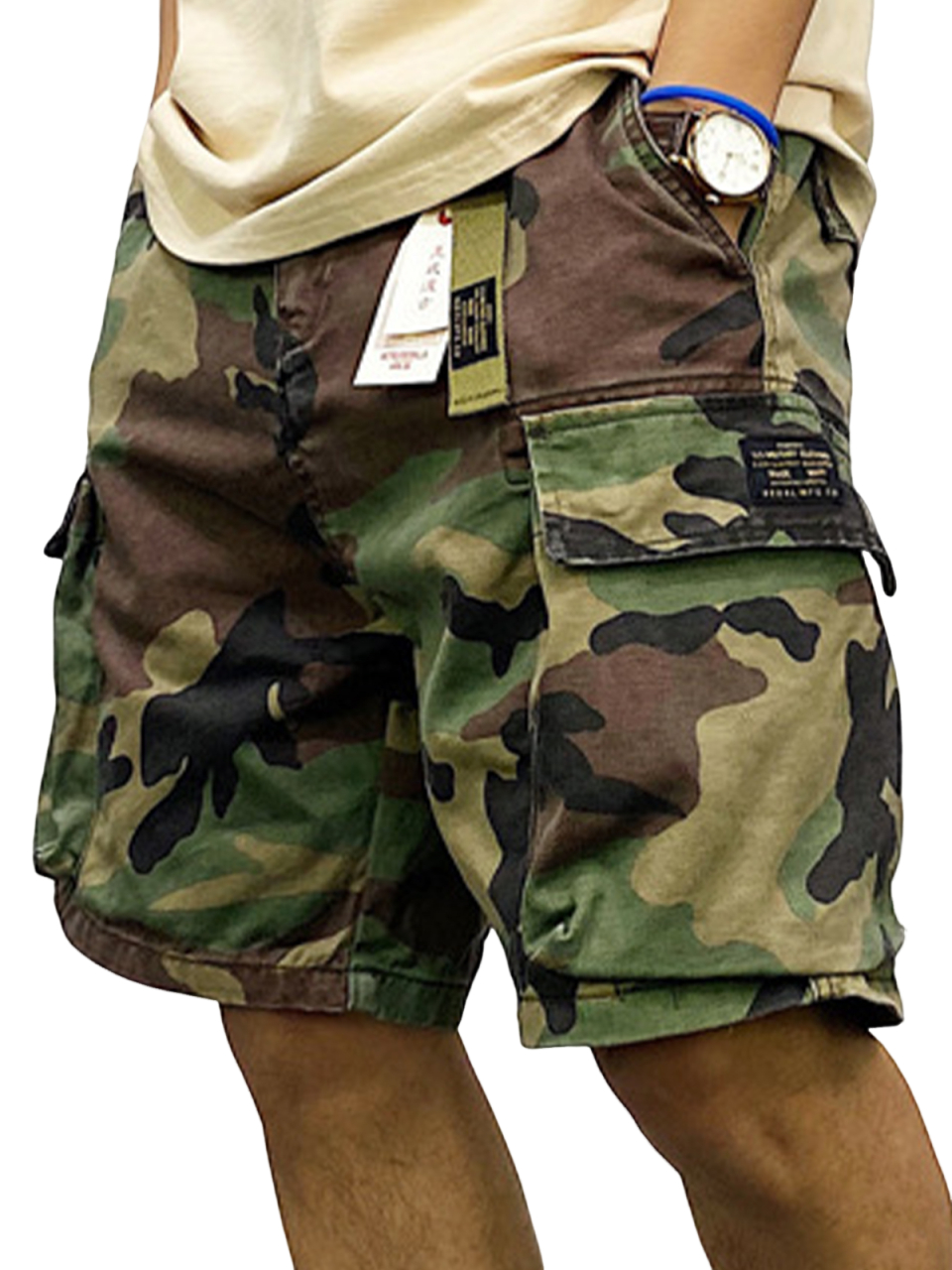 Herren Baumwolle Camouflage Multi-Taschen Lockere Cargo Shorts mit Gürtel