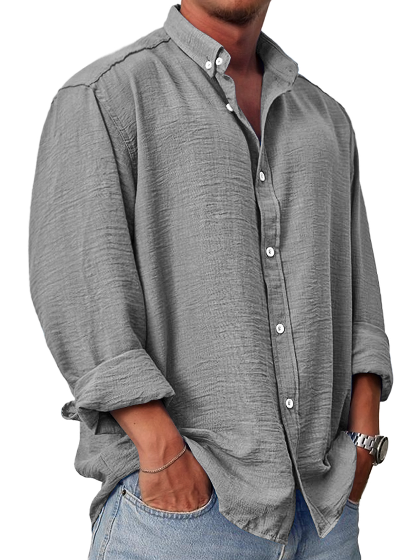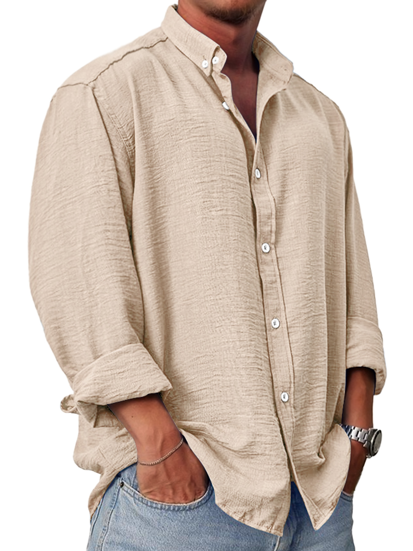 - Schnitt: Lässiger Schnitt. Nicht zu boxy und nicht zu schmal. Entwickelt, um ungeknöpft getragen zu werden. Wenn Sie zwischen den Größen liegen, empfehlen wir, eine Größe größer zu wählen