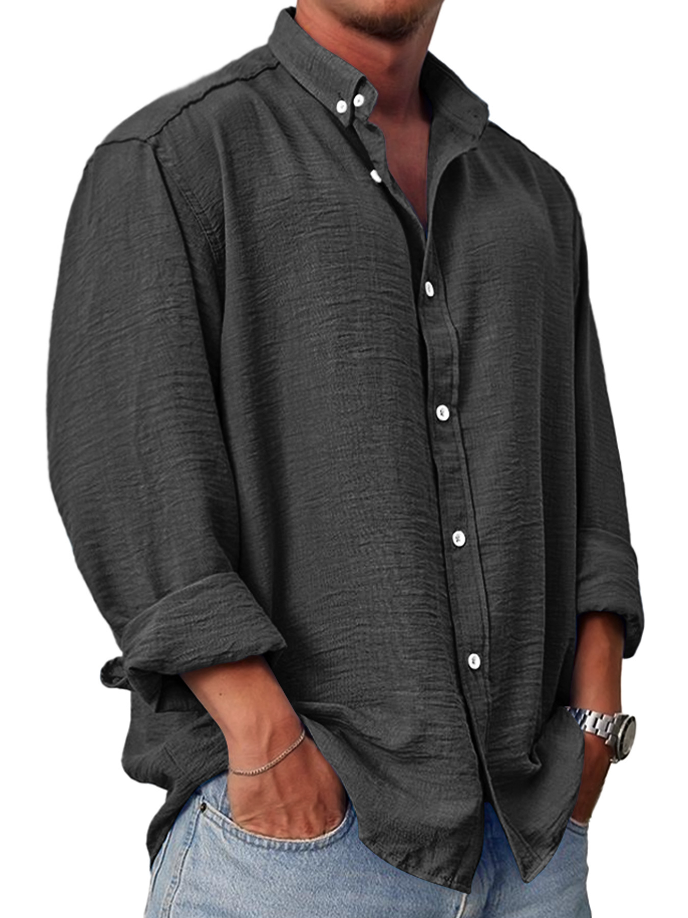 Herren Tägliches Lässiges Revers Bequemes Langarmhemd