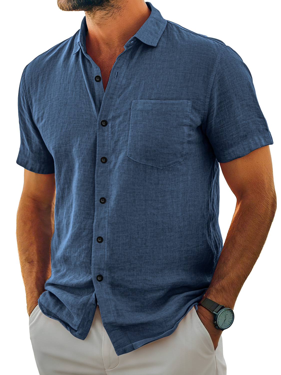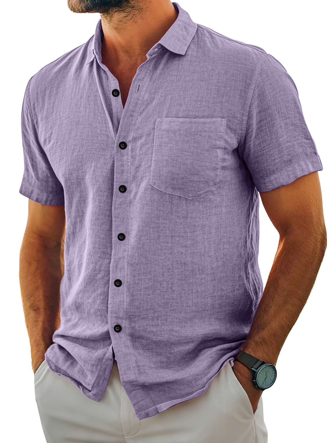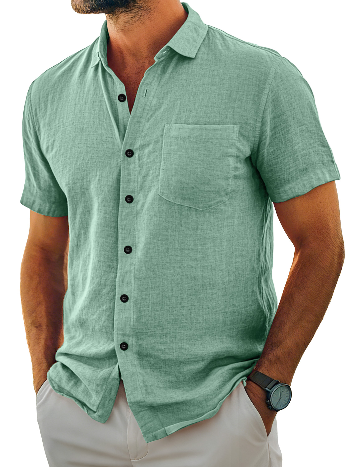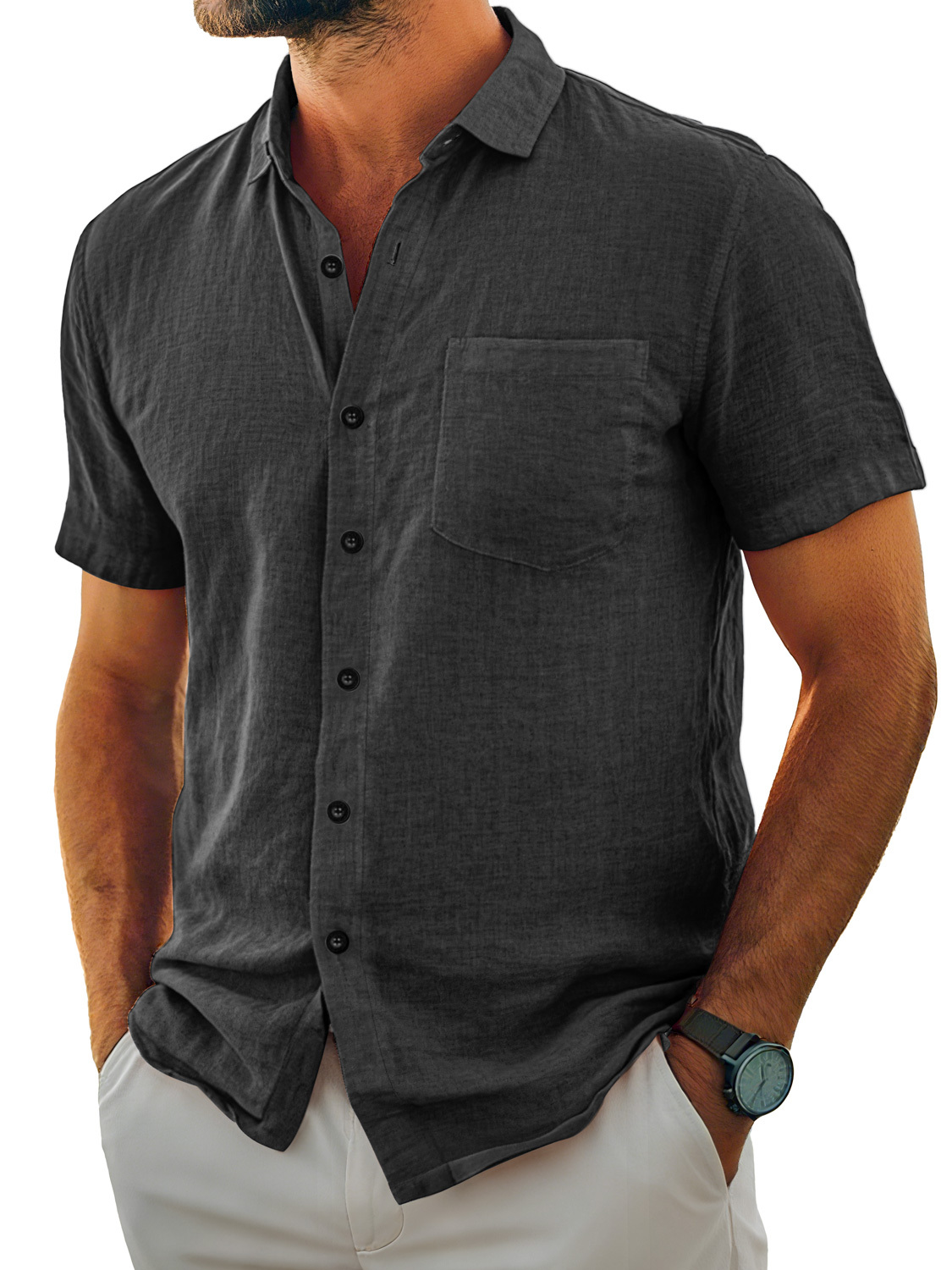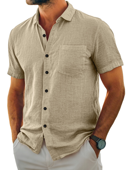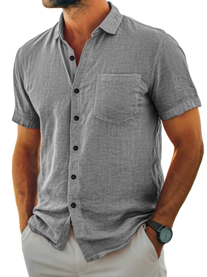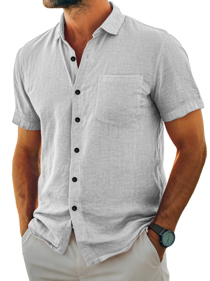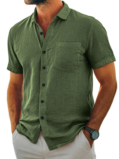 Herren Tägliches Lässiges Taschen Revers Einfarbig Bequemes Kurzarmhemd
