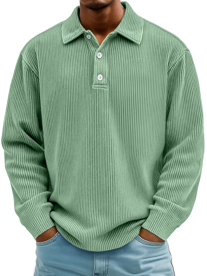 Herren Daily Casual Rippkragen Knopf-down Lockere Langarm Polohemd