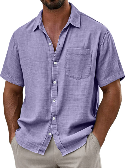 Herren Tägliches Imitat Leinen Lässiges Taschen Bequemes Einfarbiges Kurzarmhemd