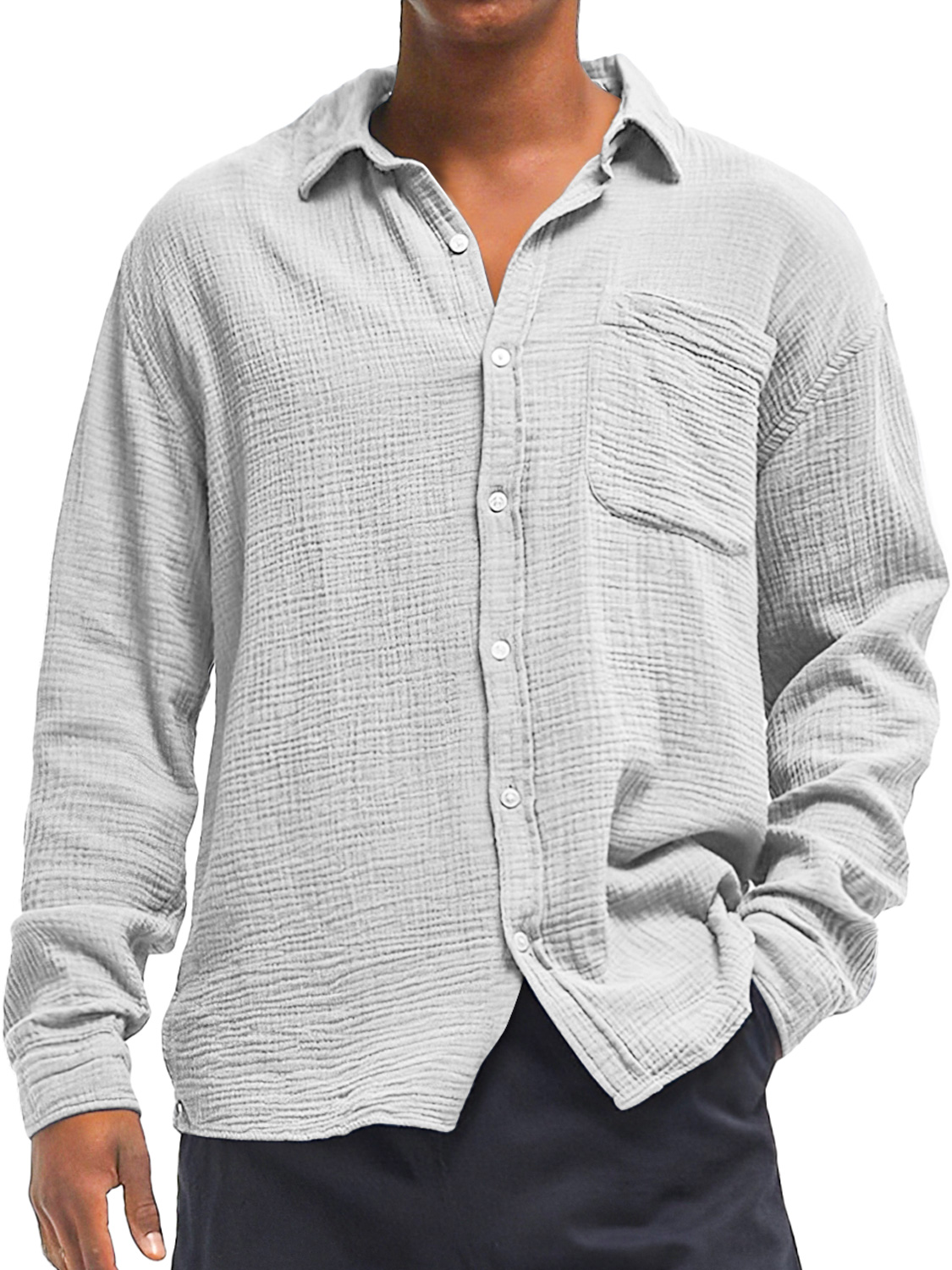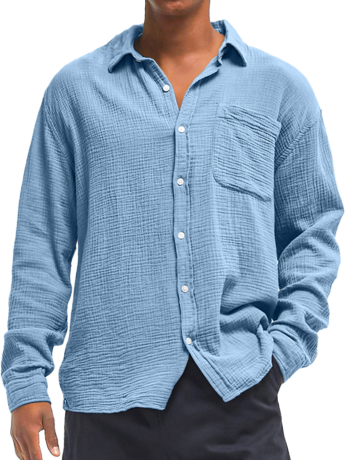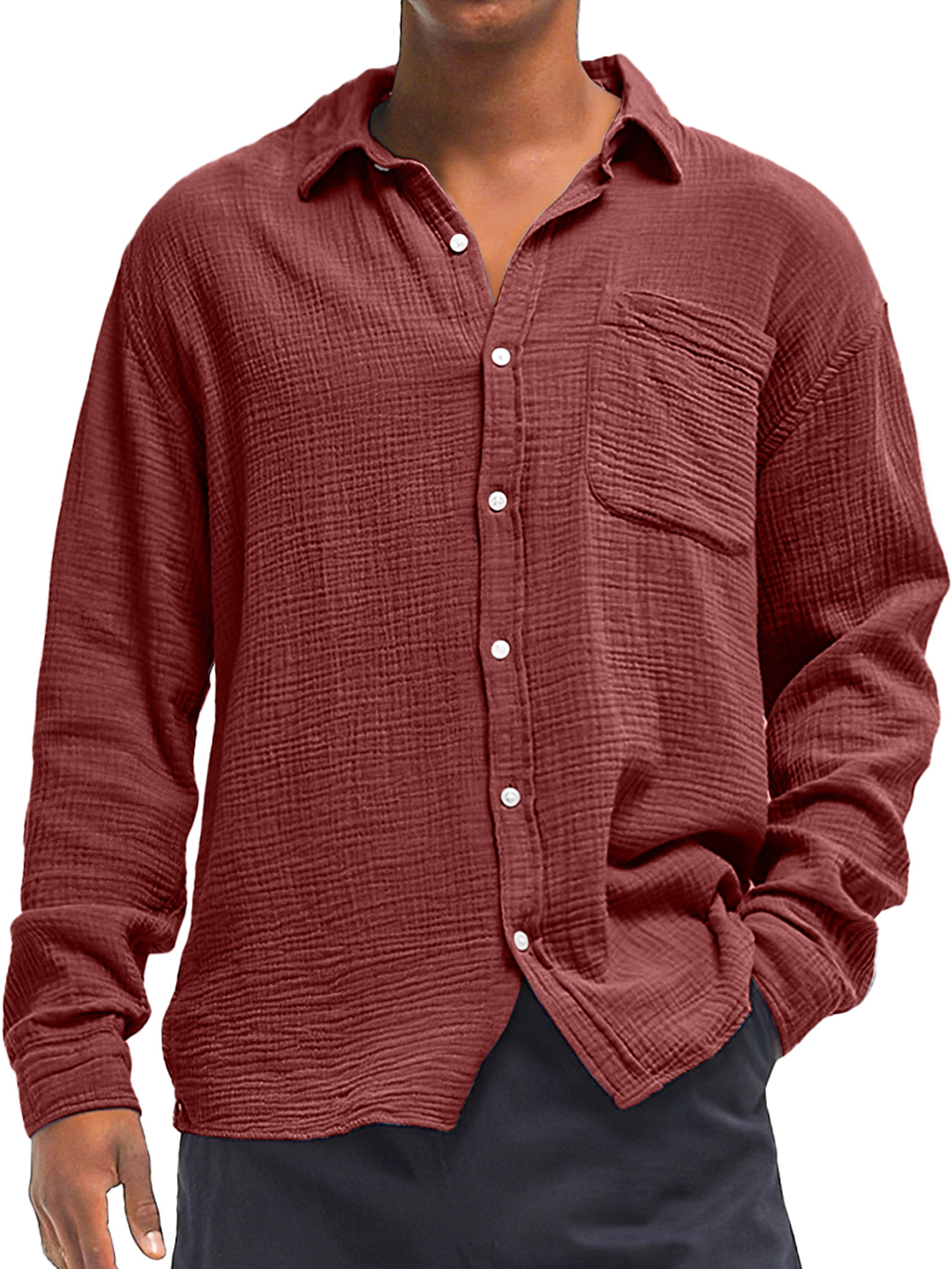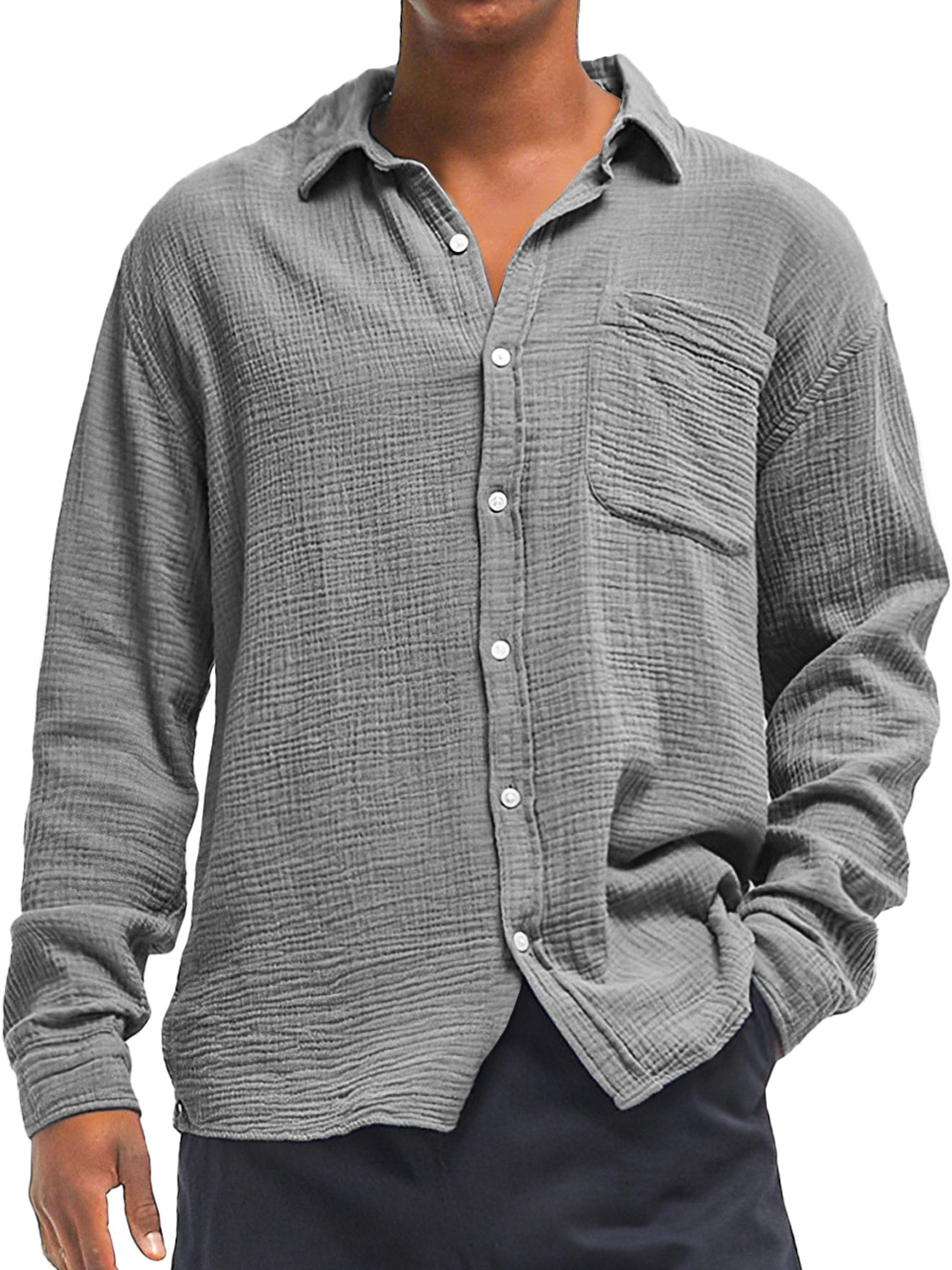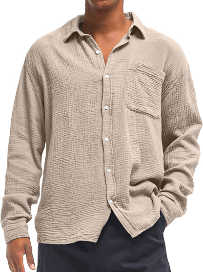 Herren Daily Texture Freizeit Tasche Einfarbig Langarmhemd