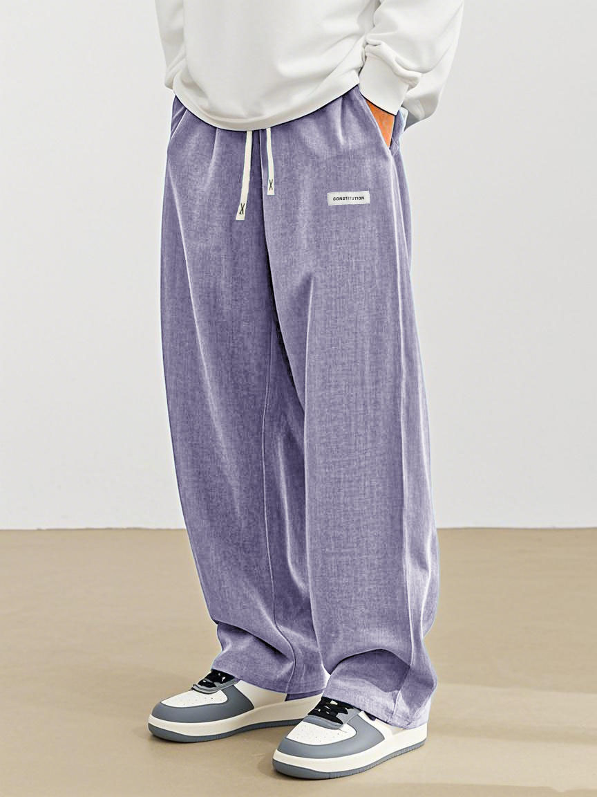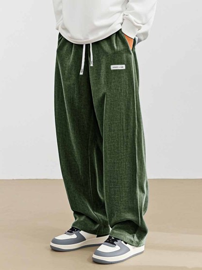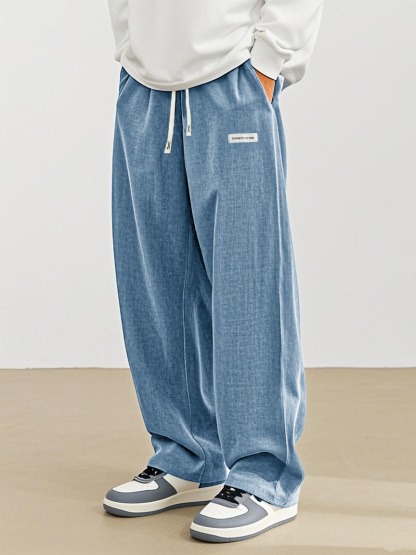 Herrenmode Freizeit Alltag Hanfstoff Tasche besticktes Logo lockere Hose