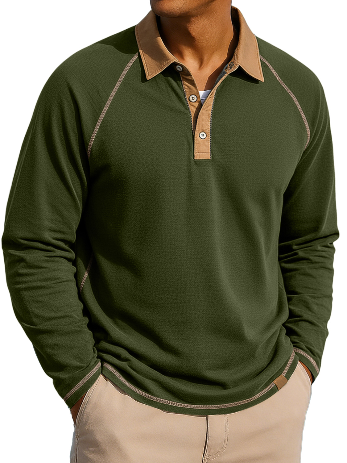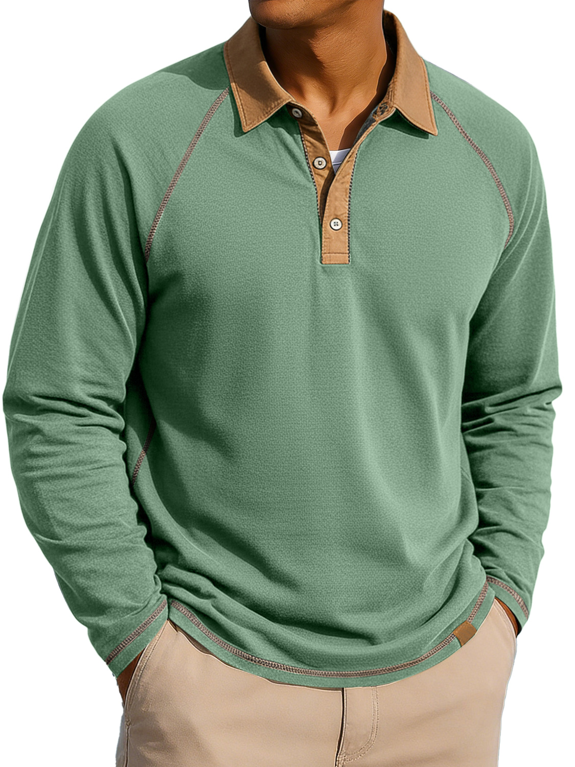 Herren Revers Knopf-auf Farbblock Raglan Ärmel Freizeit Langarm Polohemd