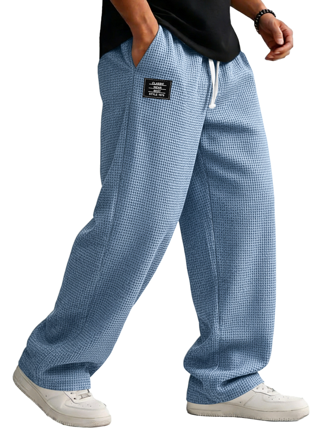 Herren lockere Waffelstrick Freizeit-Hosen mit elastischem Bund und gesticktem Logo
