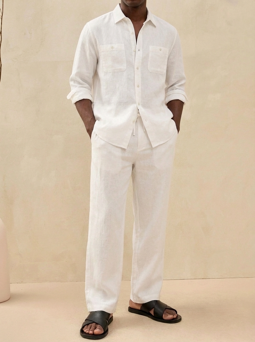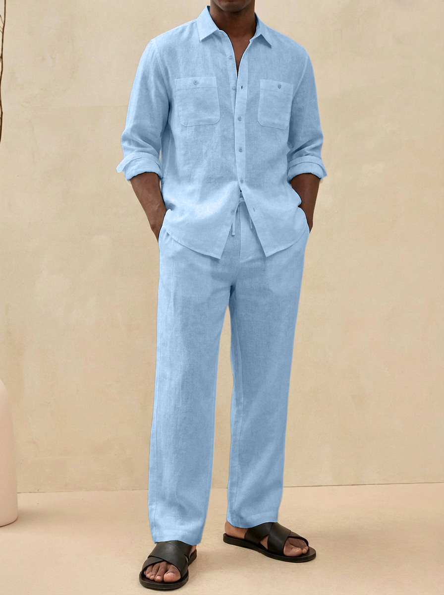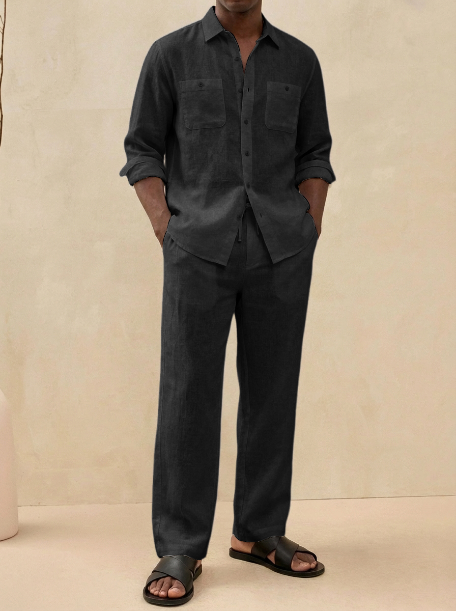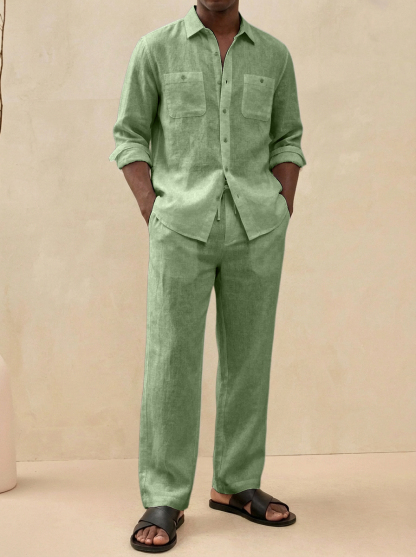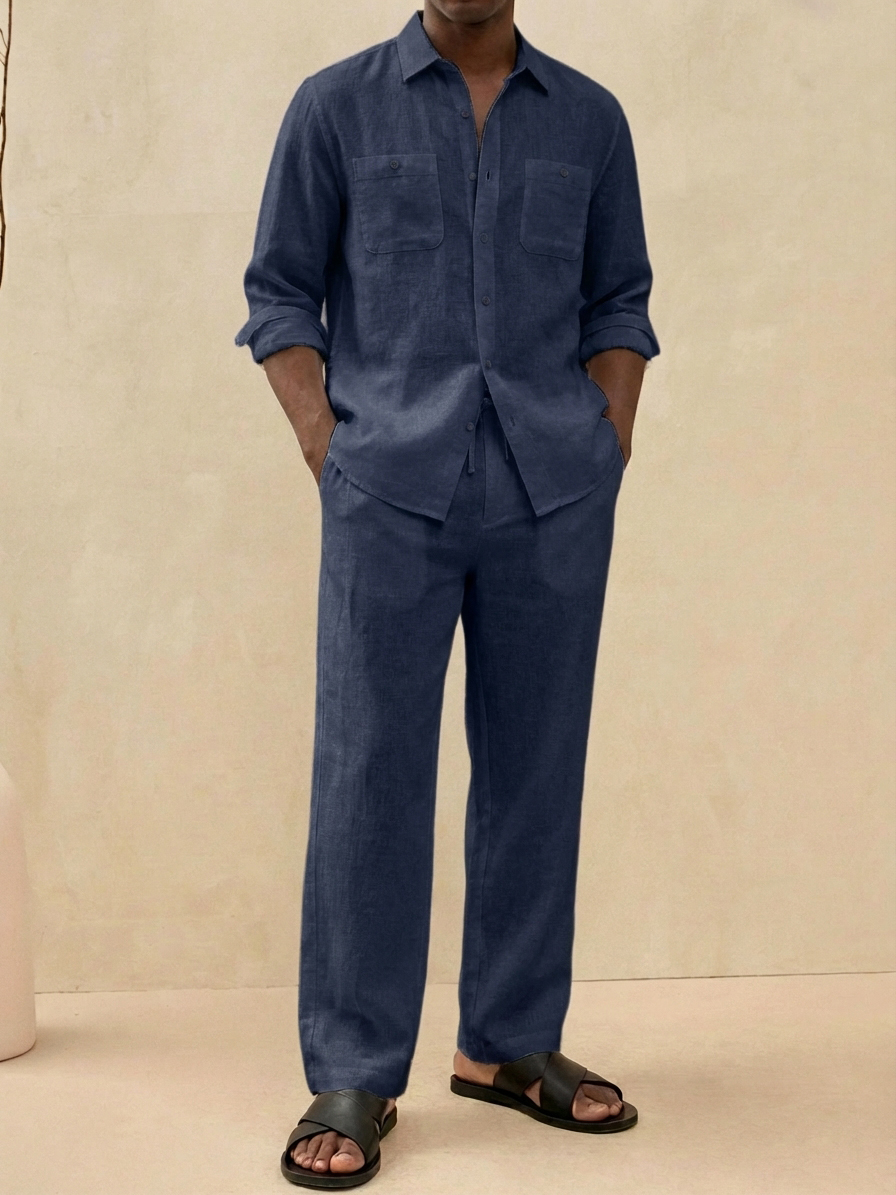 Herren Old Money Stil Freizeit Baumwoll- und Leinenhemd und Hosen Set