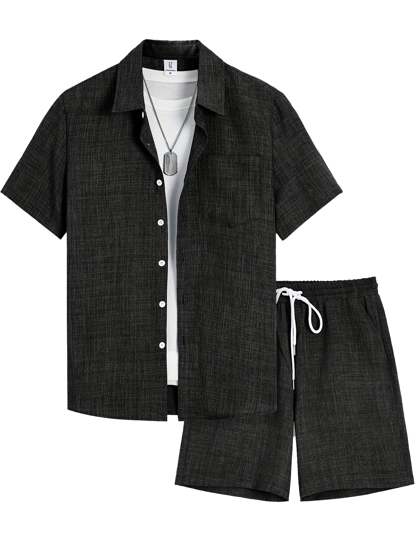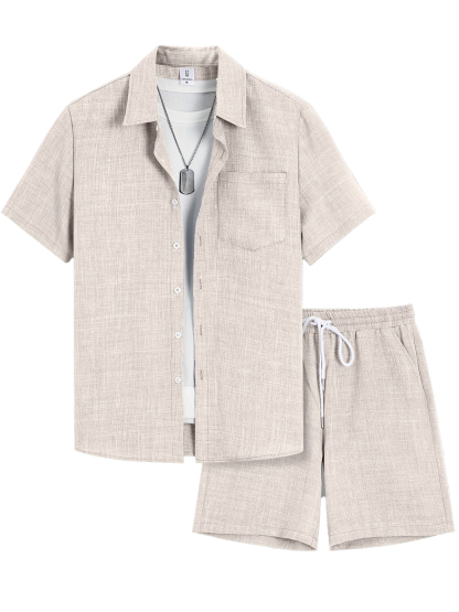 Herren Old Money Stil Baumwolle und Leinen Hemd und Shorts Set OOTD