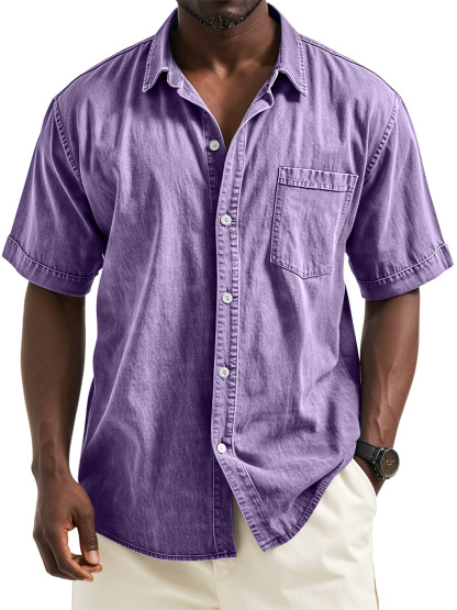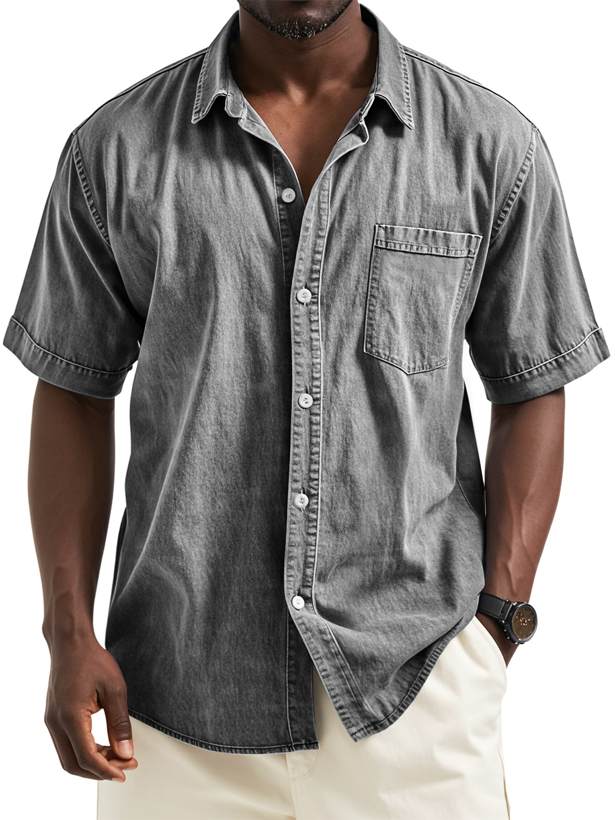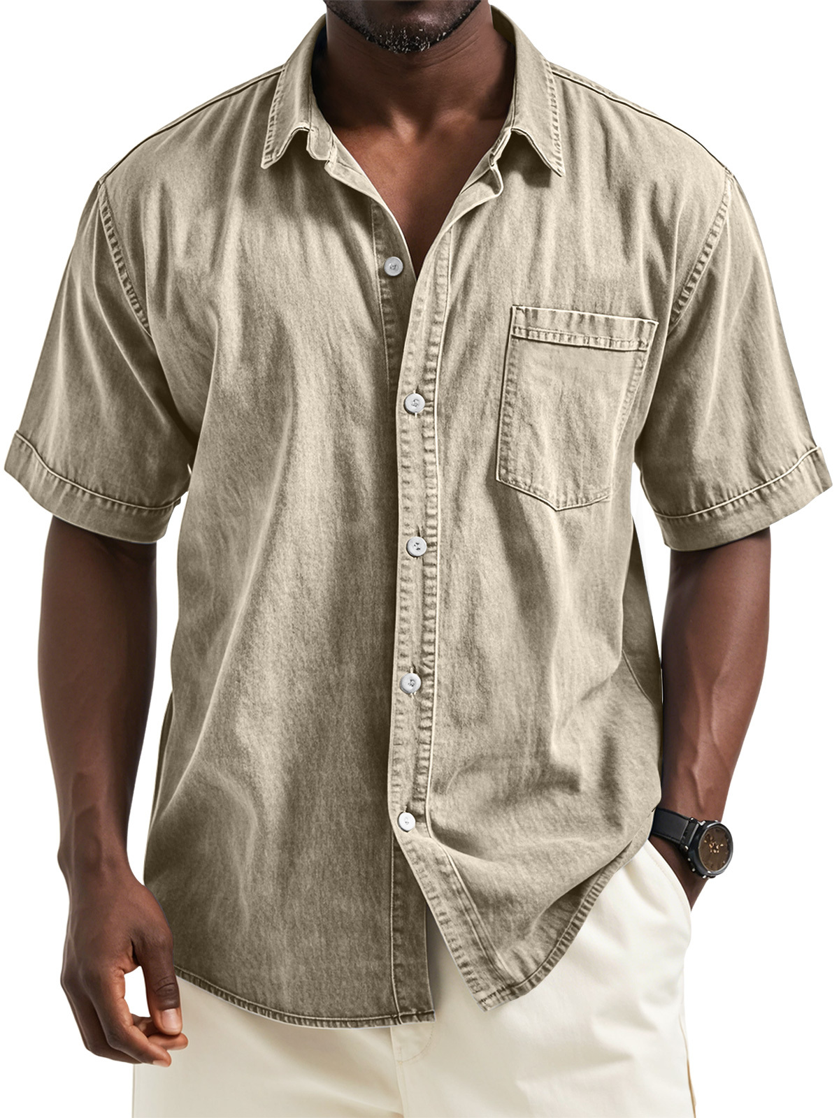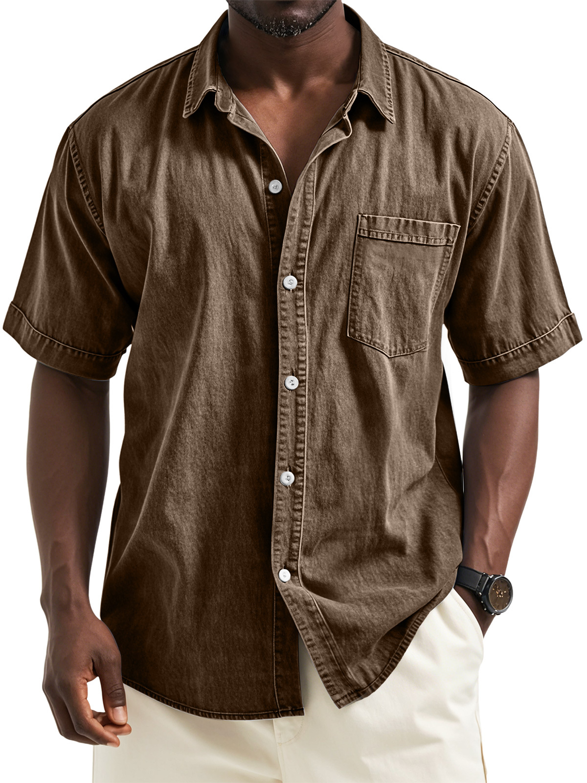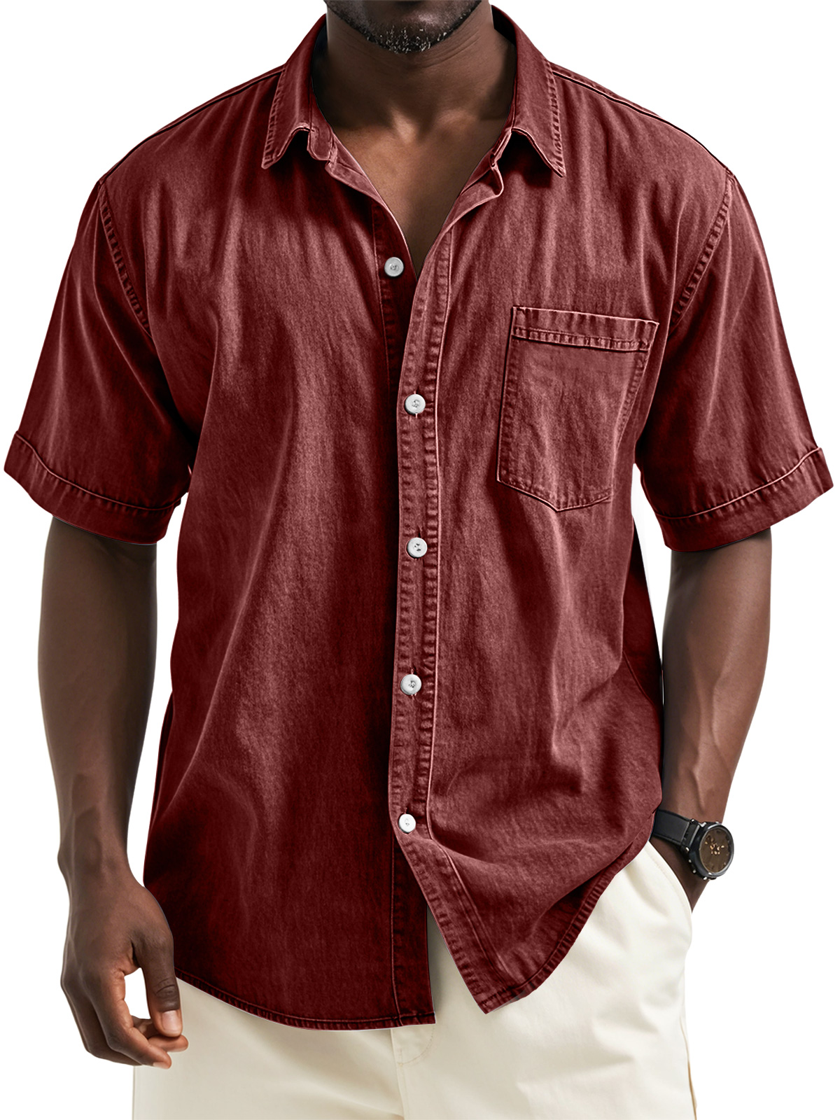 Herren Retro Freizeit Kragen Tasche Einfarbig Kurzarmhemd