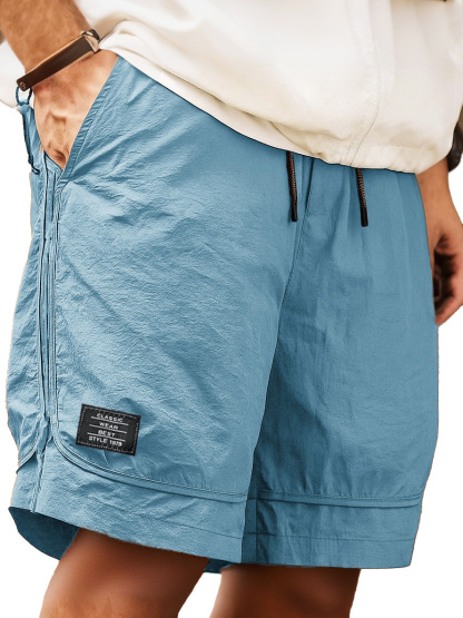 Herren Retro Outdoor Arbeitskleidung Sport schnell trocknend gesticktes Logo elastischer Bund mit Kordelzug Taschen Shorts