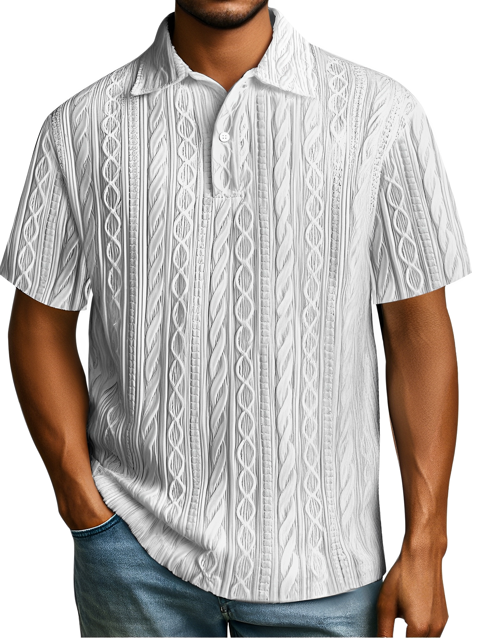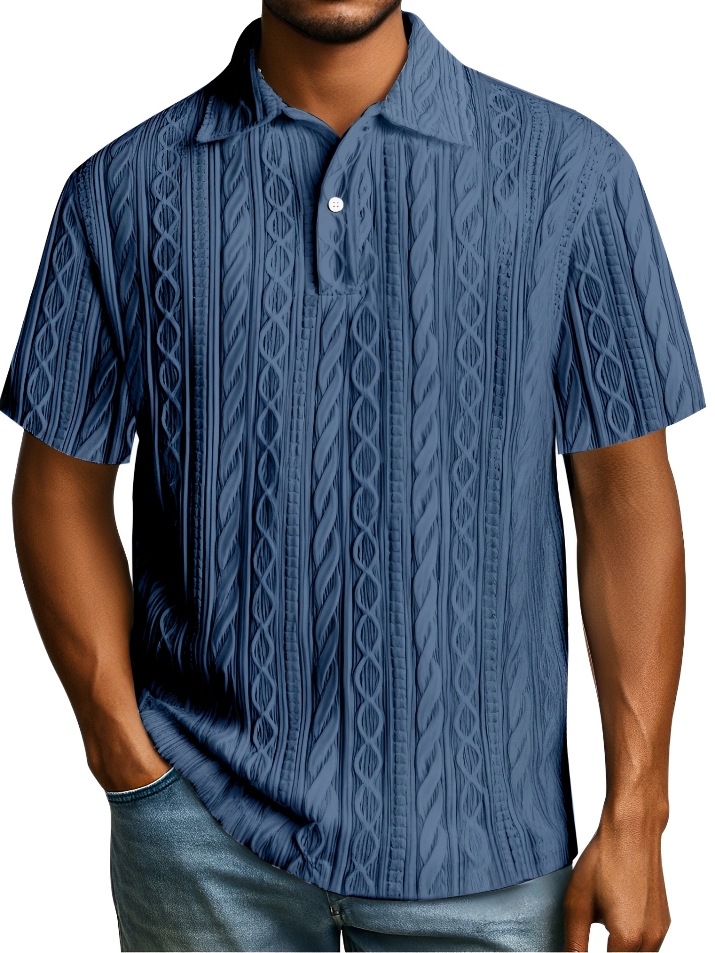 Herren Einfaches Tägliches Einfarbiges Texturiertes Knopfkragen Kurzarm Polohemd