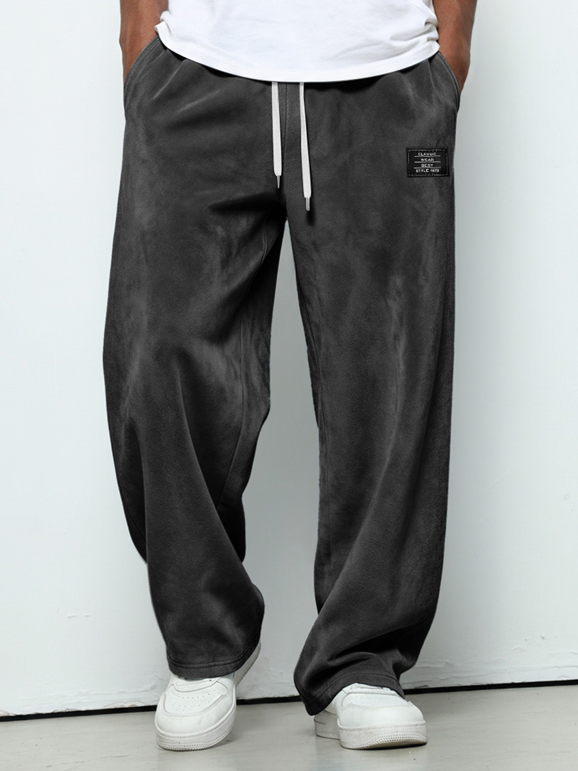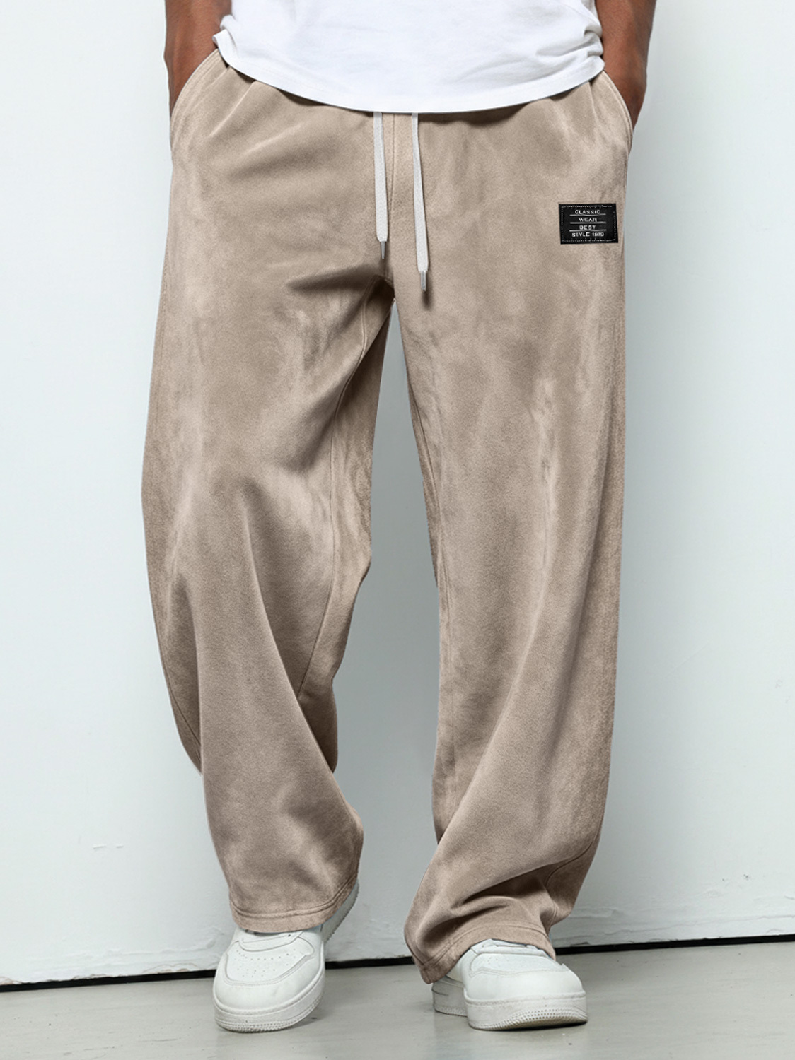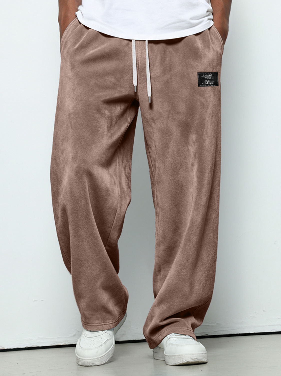 Herren einfache Wildleder bestickte Logo lockere einfarbige Hose