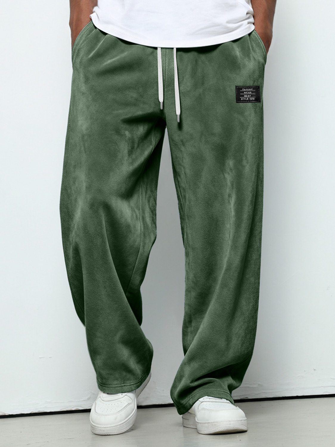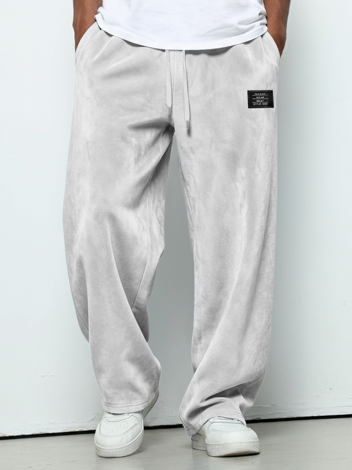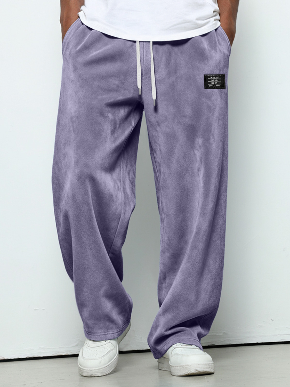 Herren einfache Wildleder bestickte Logo lockere einfarbige Hose