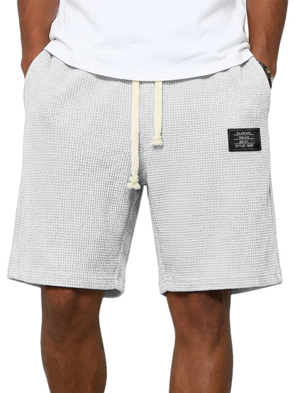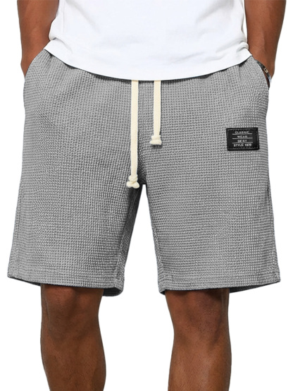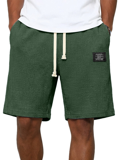 Herren einfache Waffel besticktes Logo lässige einfarbige Shorts