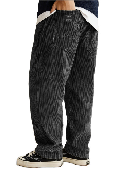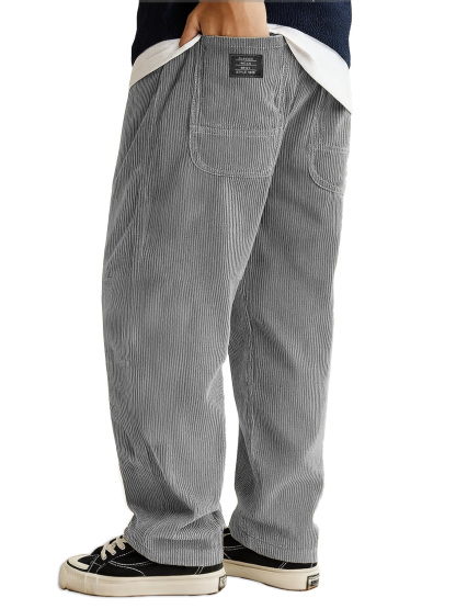 Herrenmode Tägliche Lockere Cordstoff Ribbed Oberfläche Besticktes Logo Kordelzug Lockere Elastische Taille Taschenhose