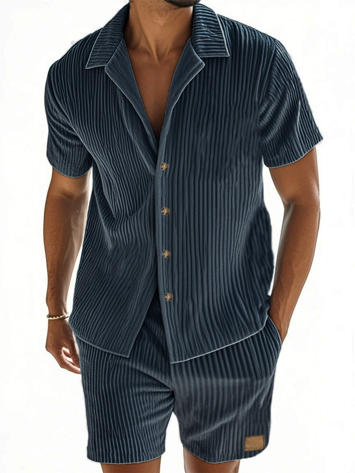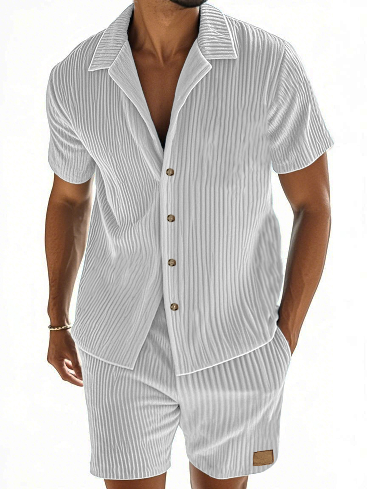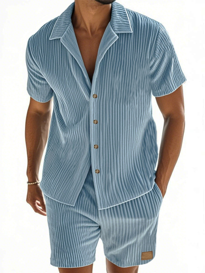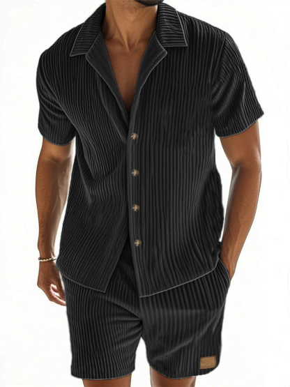 Herren Kurzarmhemd und Shorts im zweiteiligen Anzug mit vertikal gestreiftem Textur