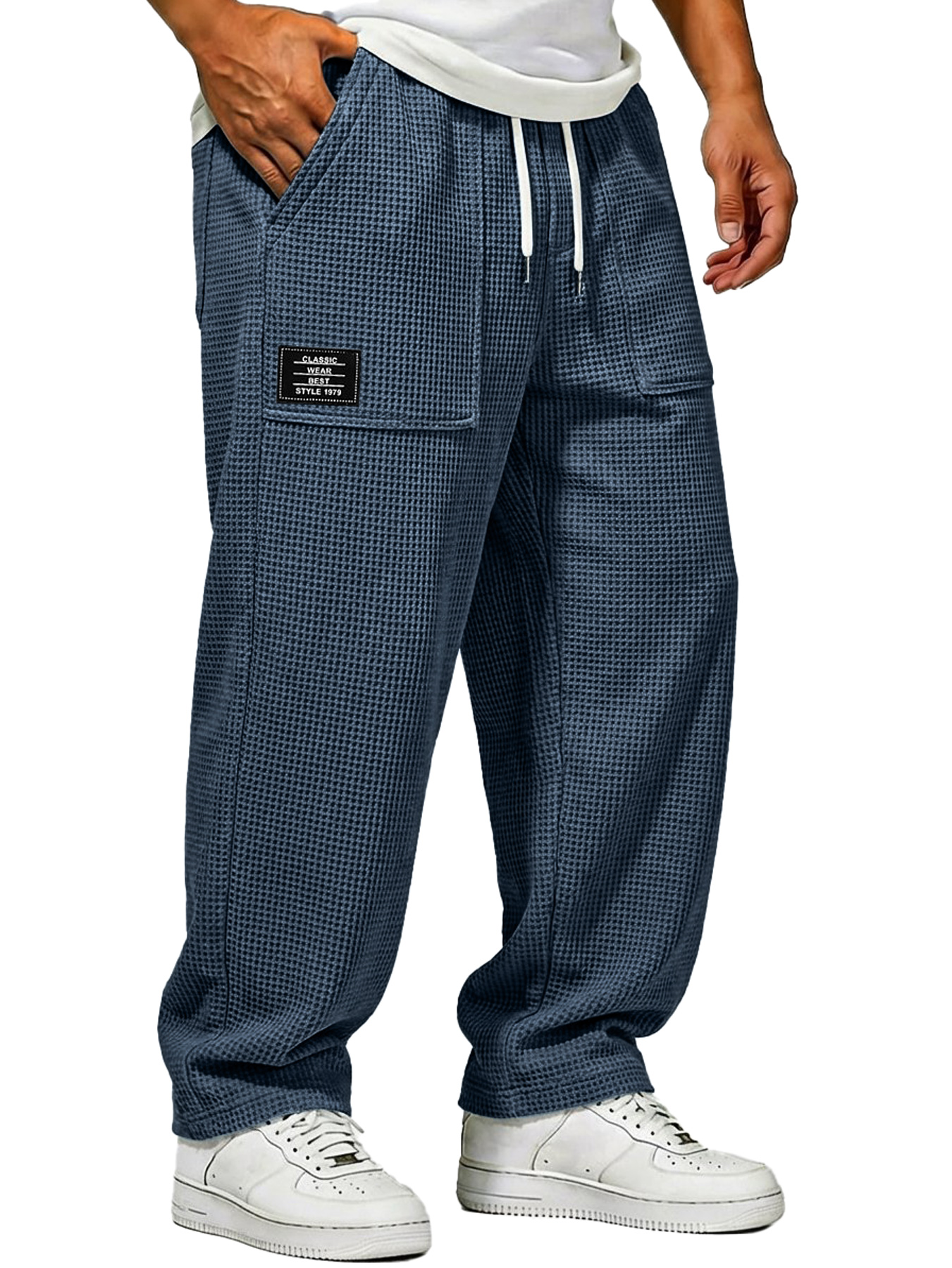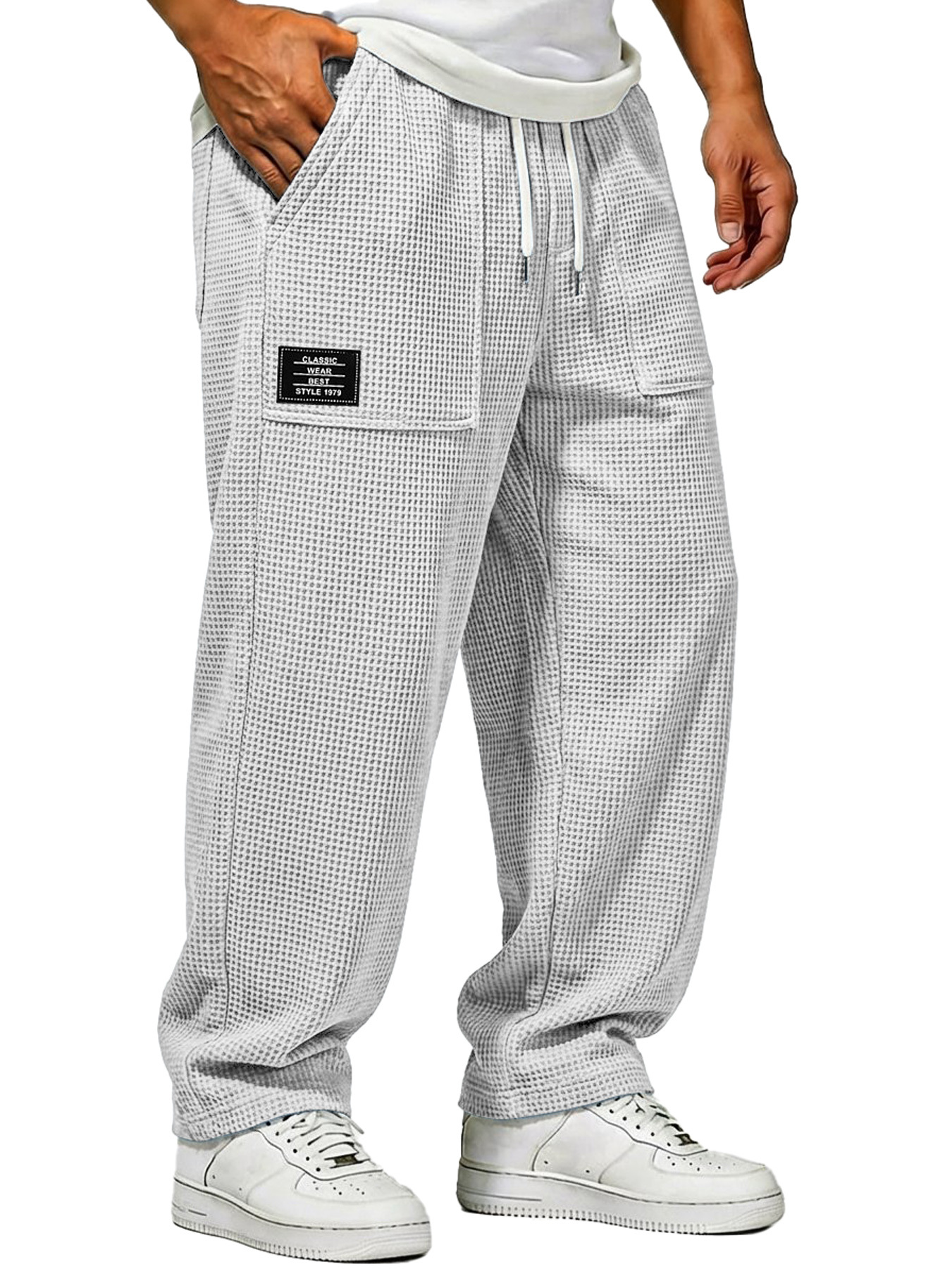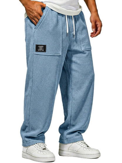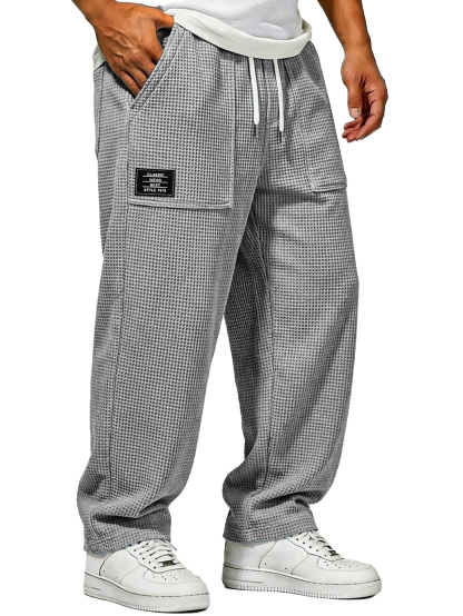 Herren Waffelstrick Freizeitlockere Hose mit aufgesetzten Taschen und gesticktem Logo