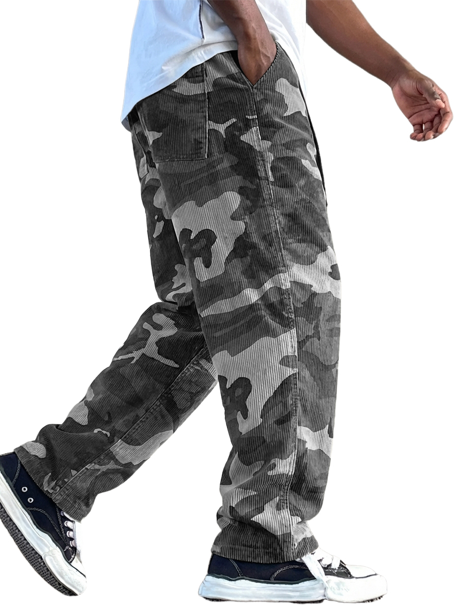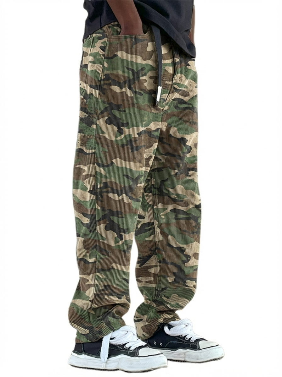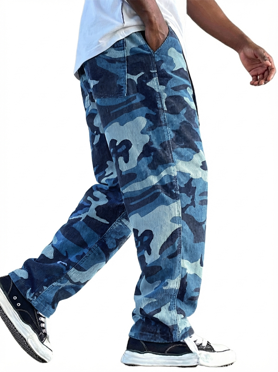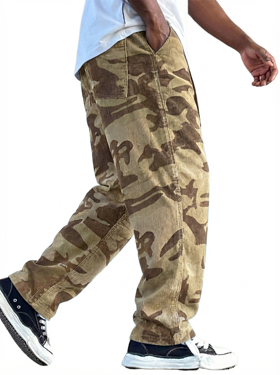 Herren-Arbeitshose aus Cord mit Tarnmuster im Retro-Stil