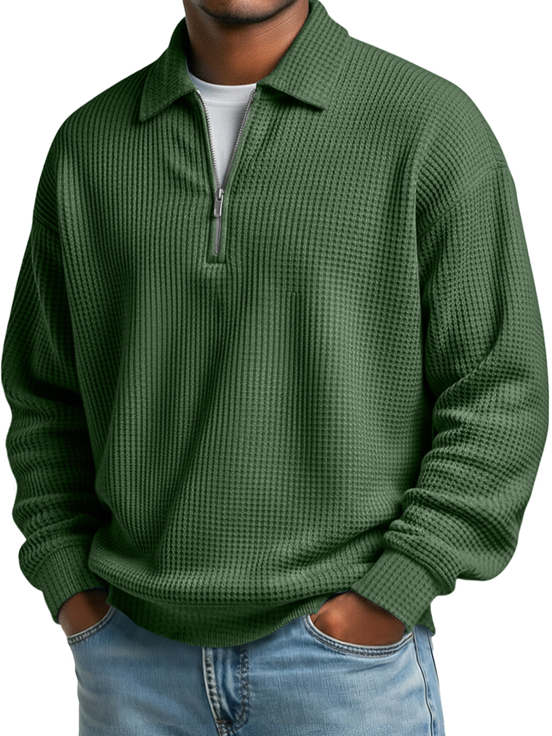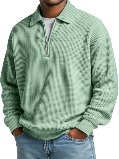 Einfaches Waffelkragen Reißverschluss Freizeit Poloshirt in einfarbig