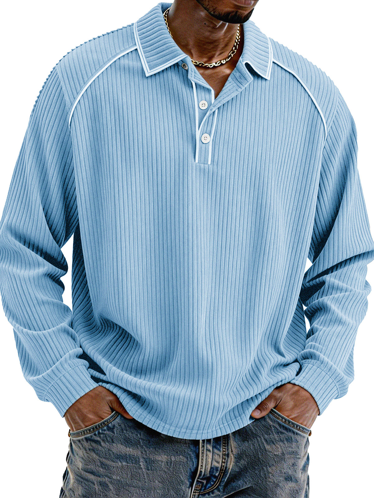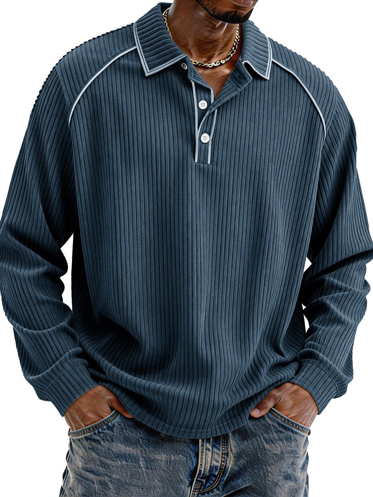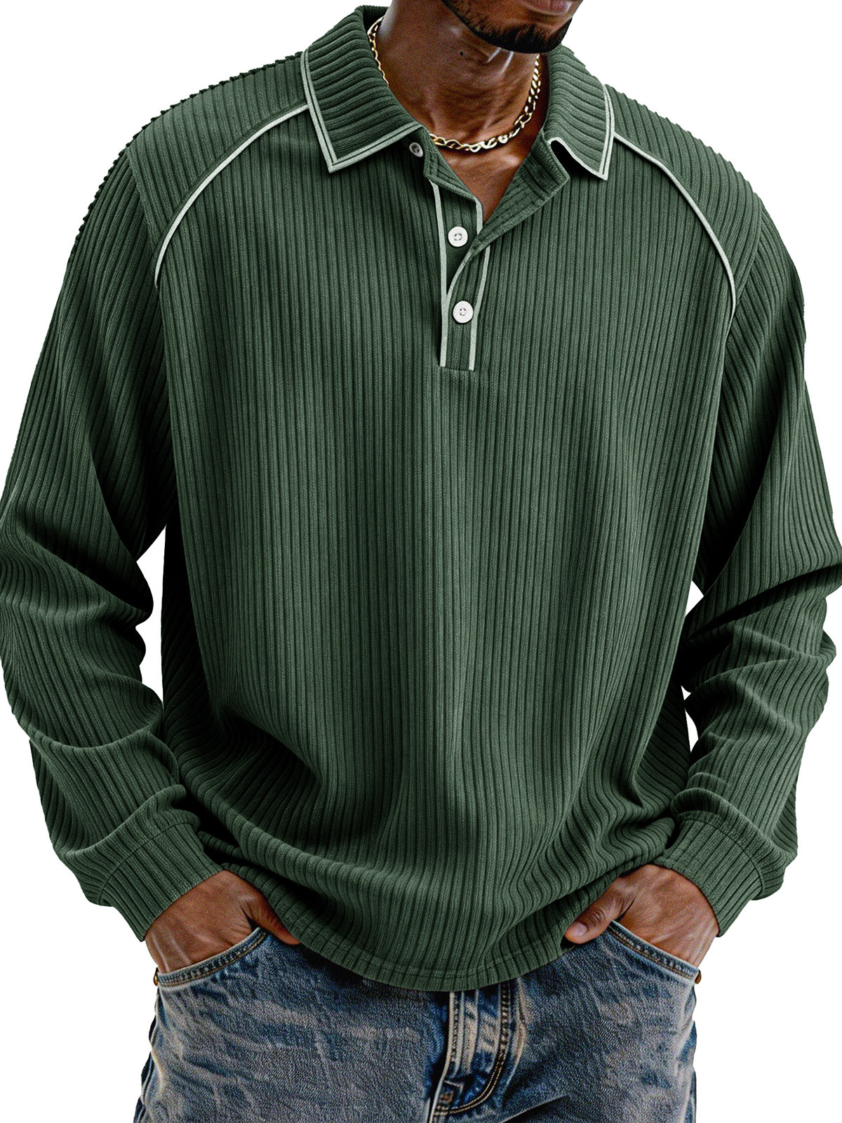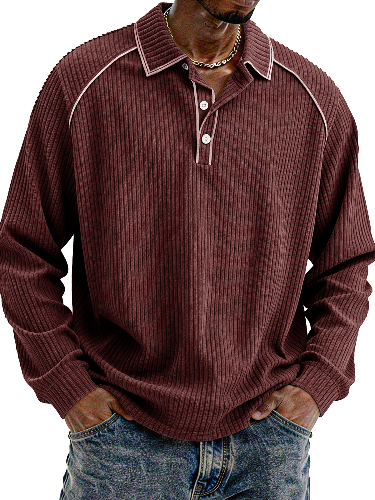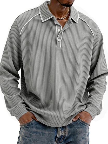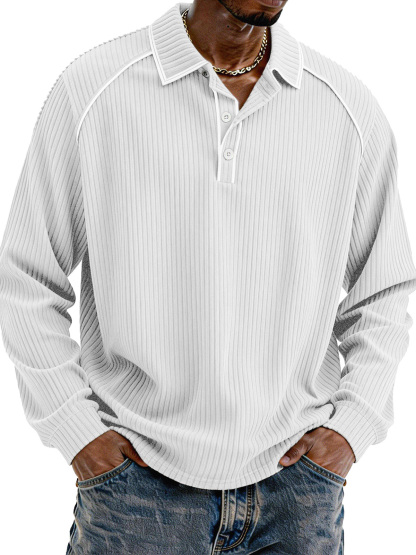 Stylische lässige lockere Cordstoff-Lapel Langarm-Polohemd