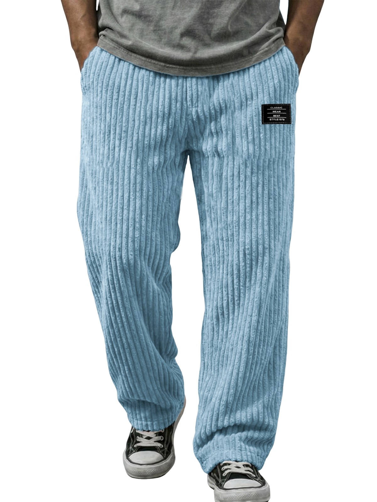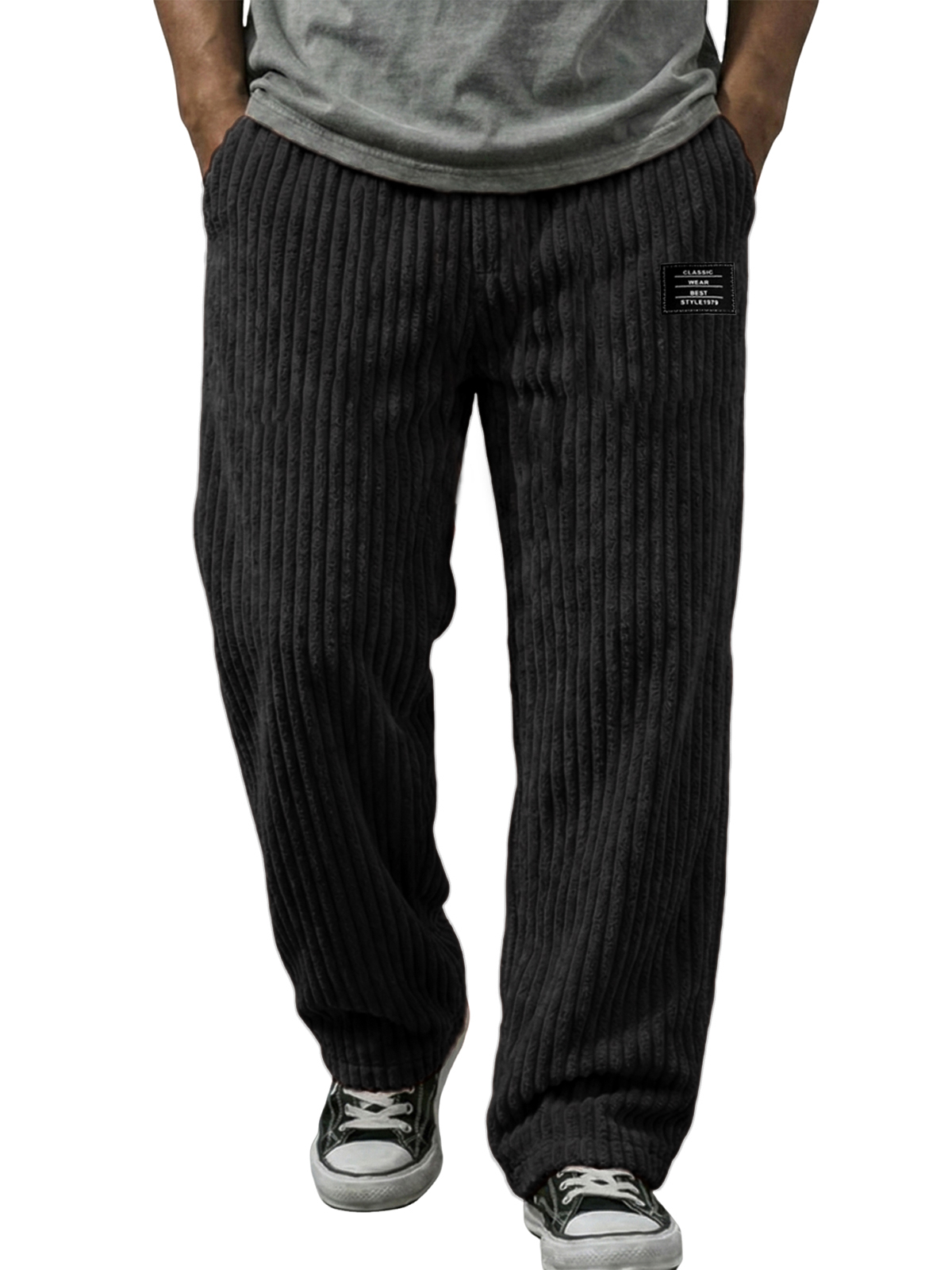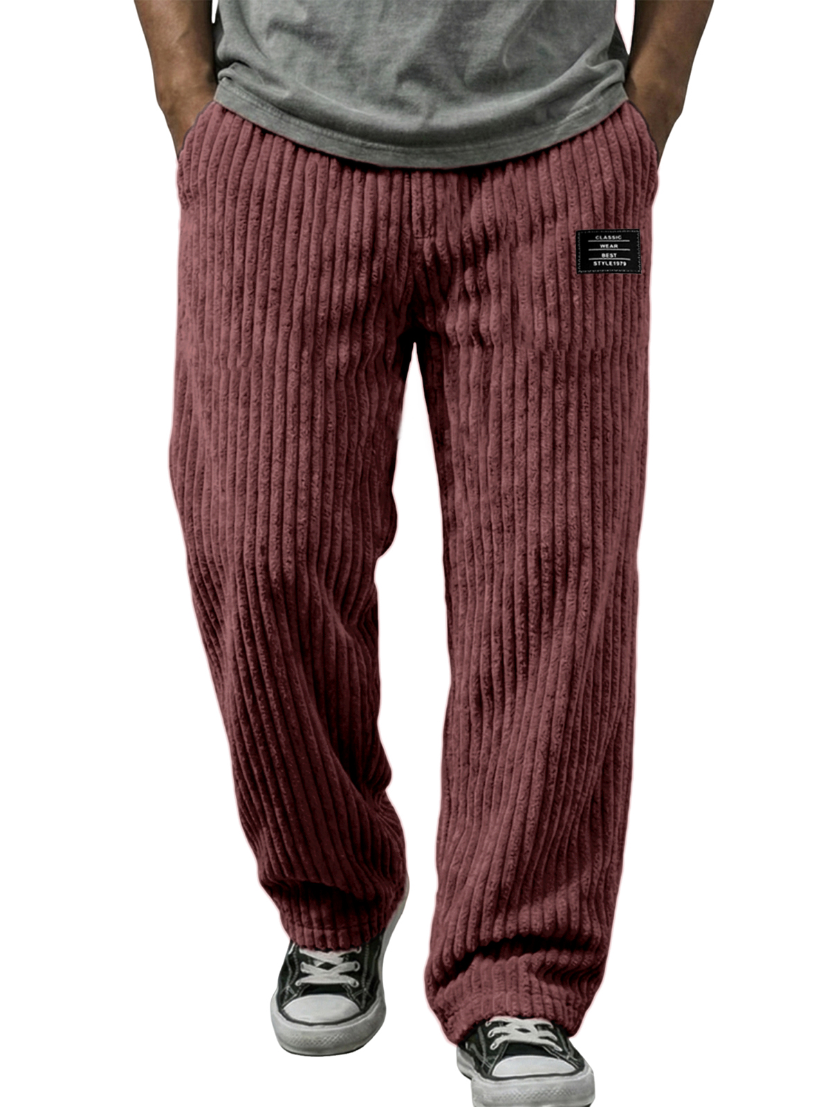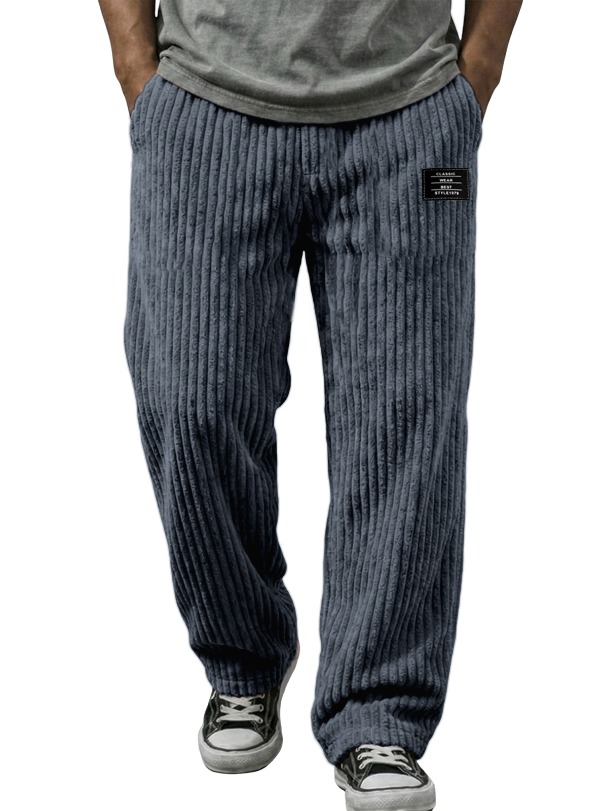 Stylische vertikale gestreifte Cordhosen mit besticktem Etikett
